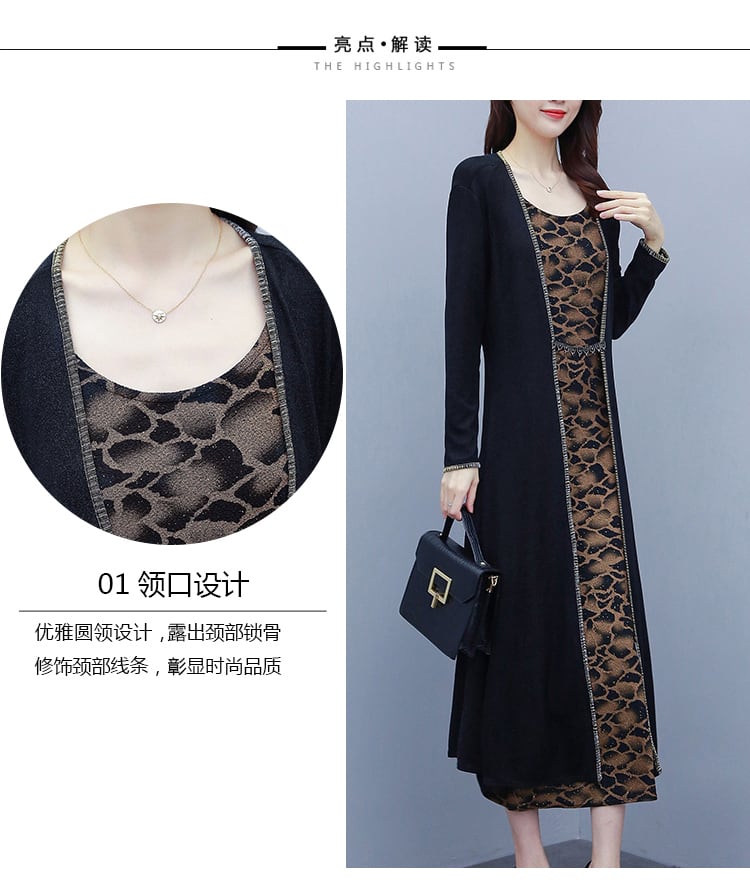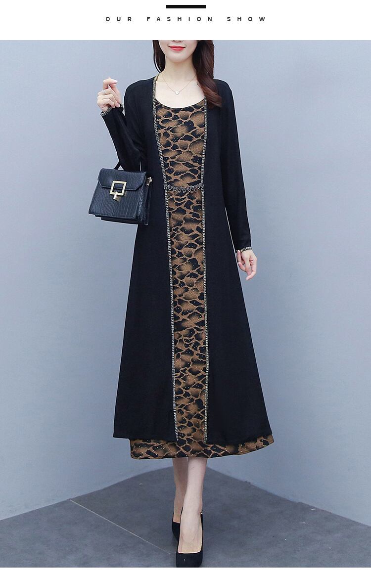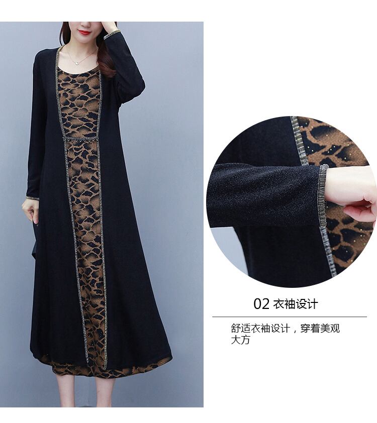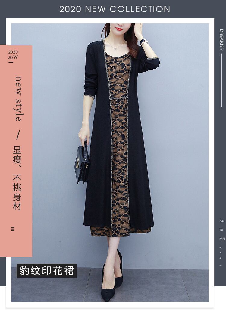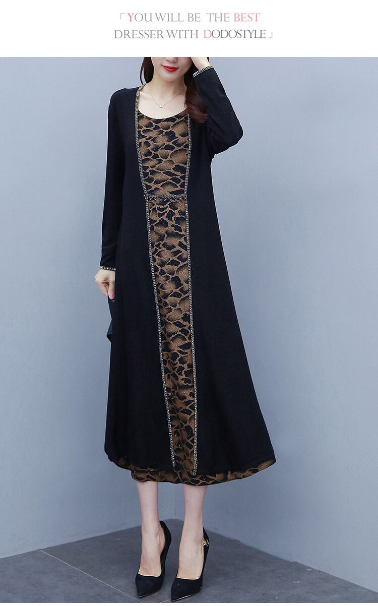 ニットドレス オータムレオパードプリント柄スカート 大きめサイズ 秋物 muto32212889098