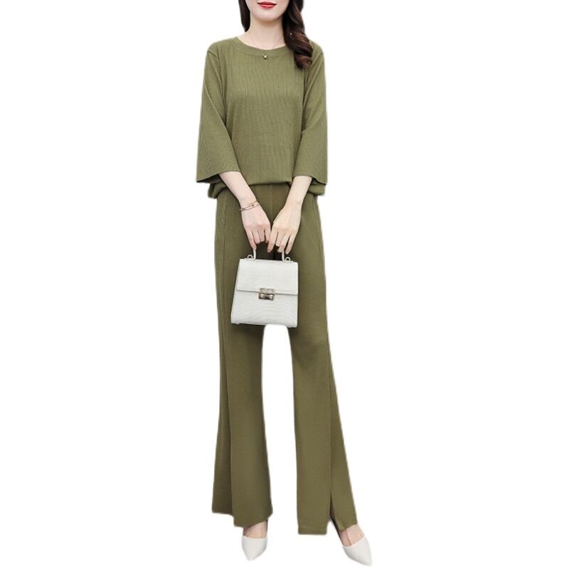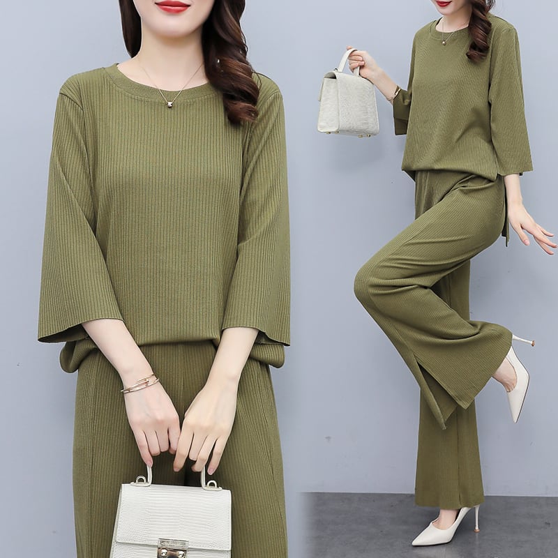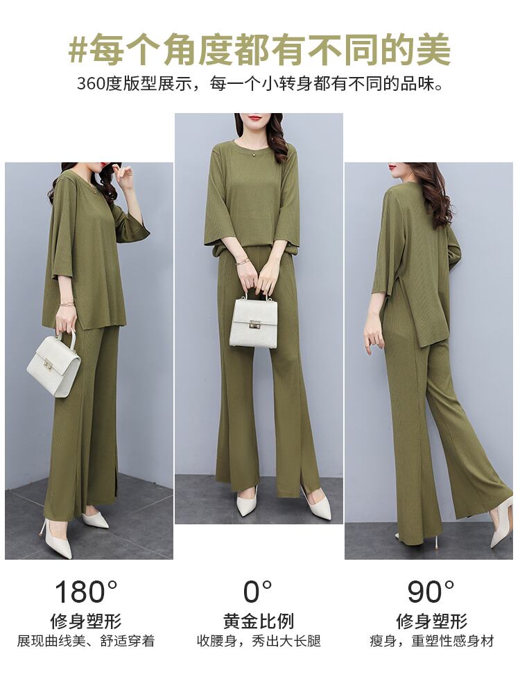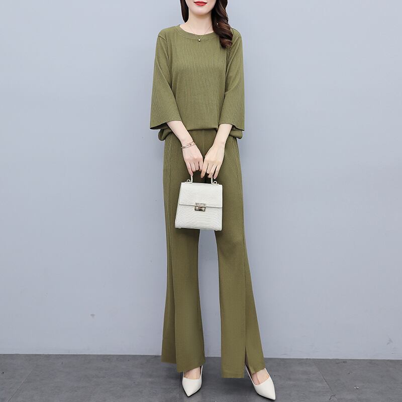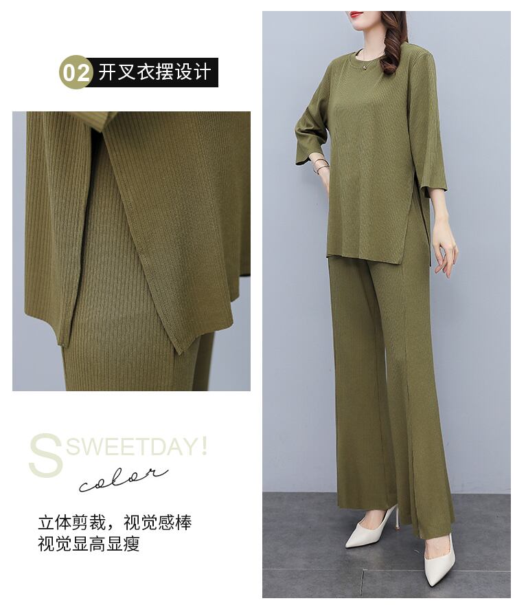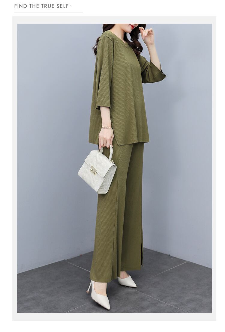 オータム薄手ワイドレッグパンツ セット 大きめサイズ 秋物 ワイドパンツ muto99637990129
