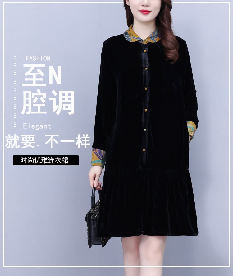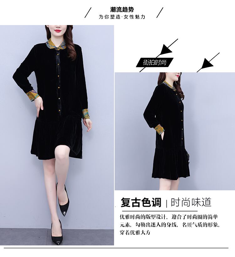 ゴールドベルベットドレス オータムスカート 大きめサイズ 秋物 muto64552232719