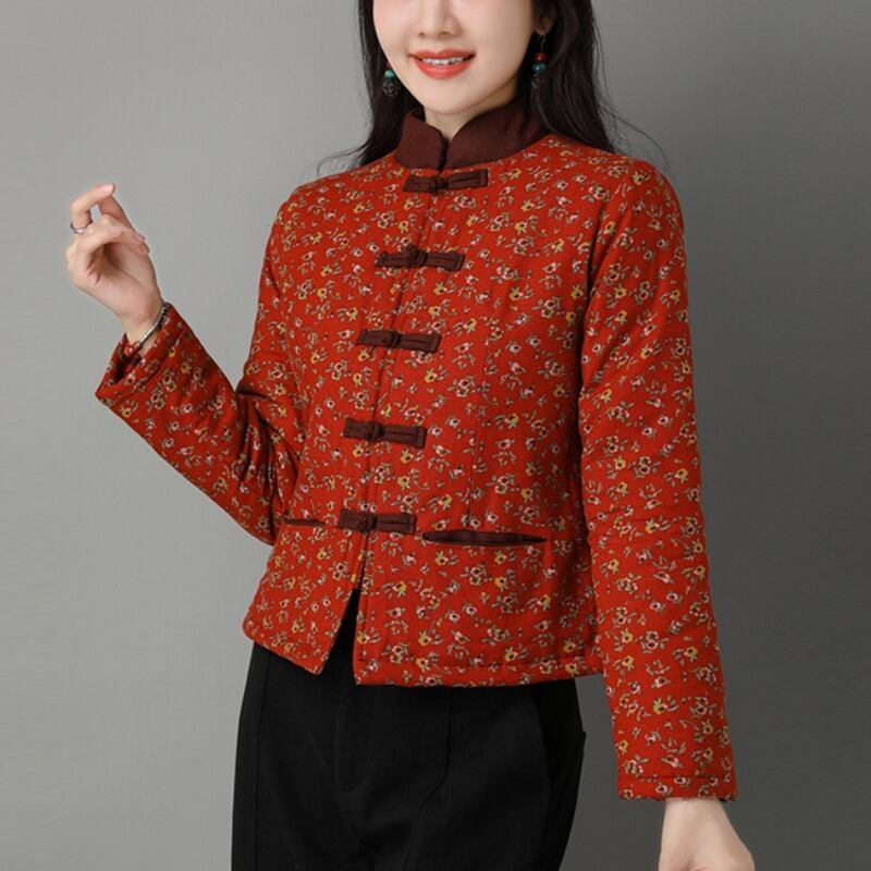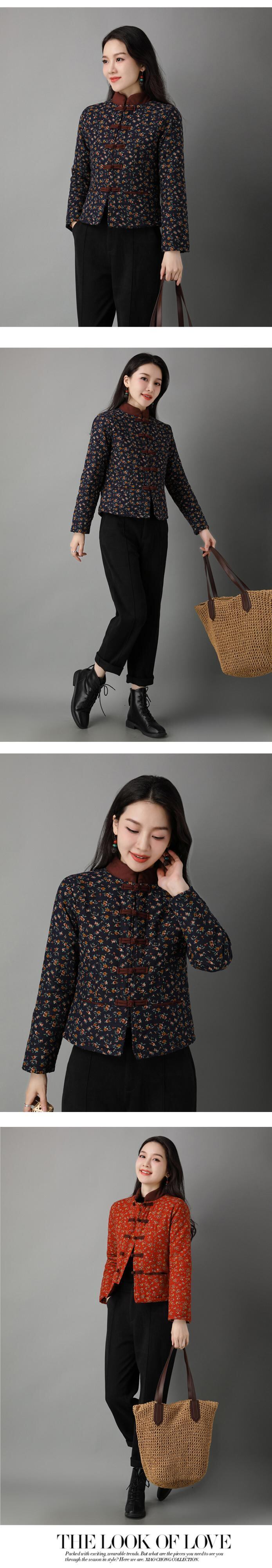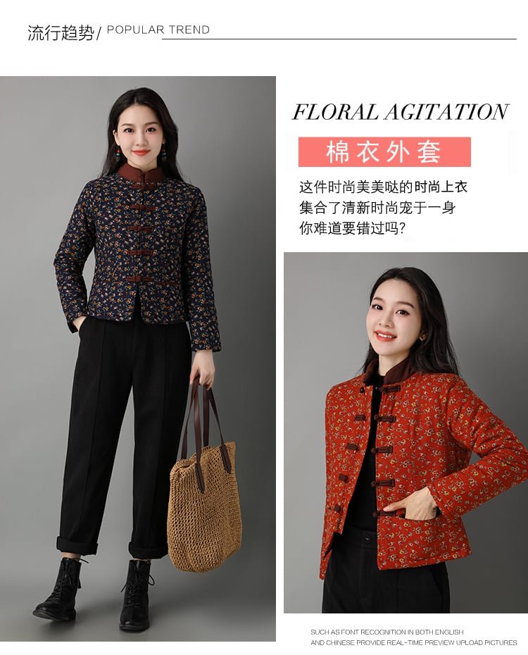 スタンダードカラーショートコート エスニックスタイルフローラルジャケット コットン レトロ 大きめサイズ 花柄 muto15336624777