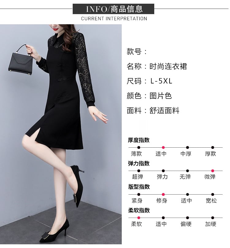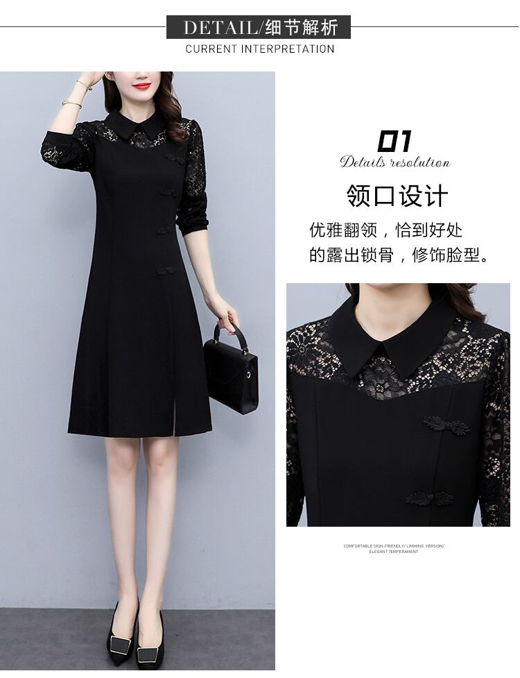 ブラックレースドレス オータム 大きめサイズ 秋物 ステッチ muto82240498620