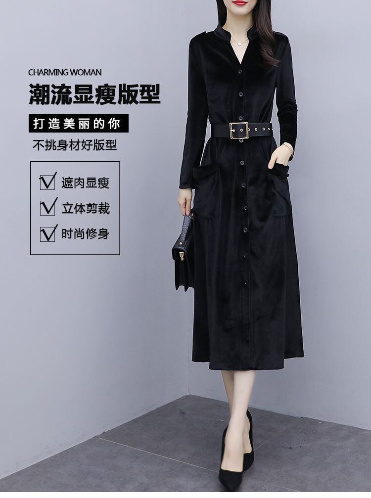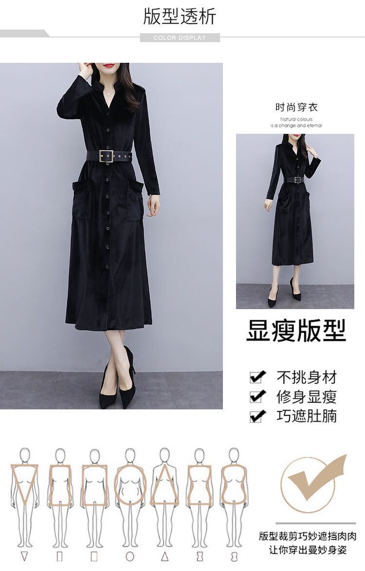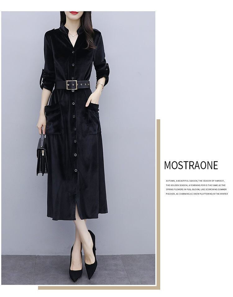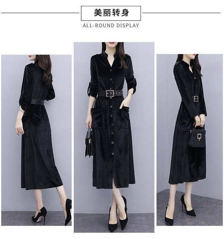 ゴールドベルベットドレス オータムウィンター 大きめサイズ 秋物 冬物 muto9461029647