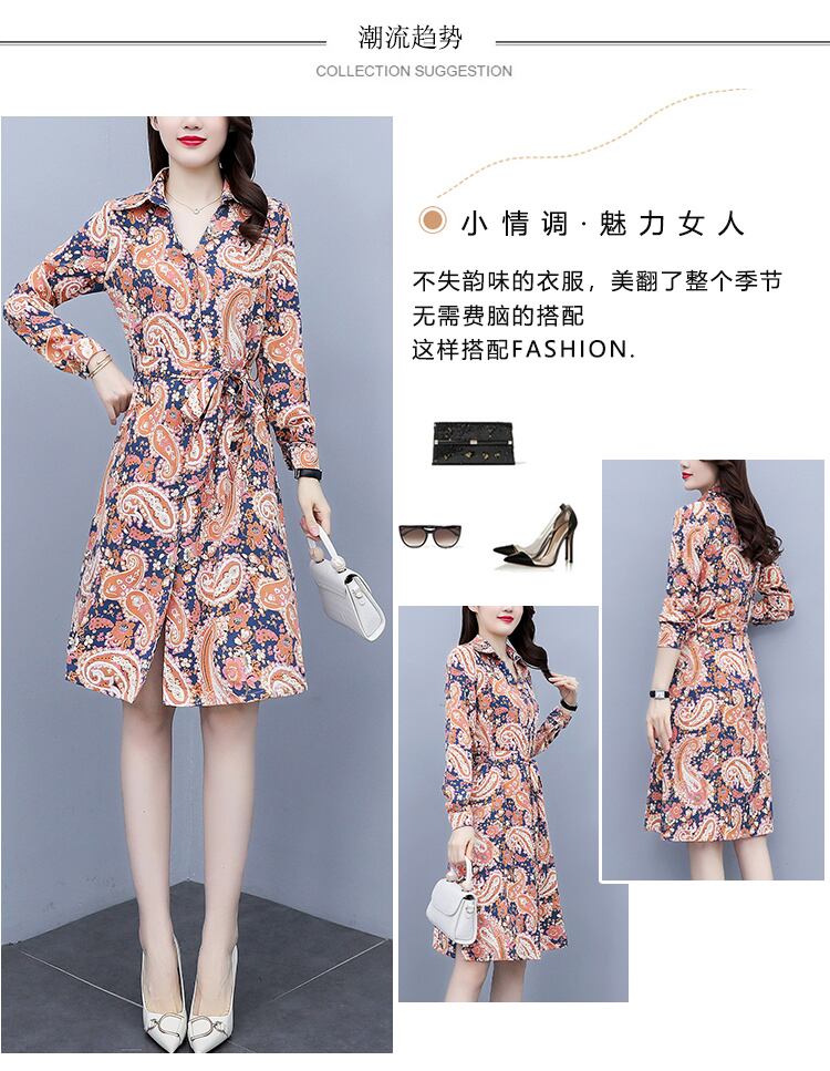 シャツ スカート オータム薄手フローラルドレス ロング 大きめサイズ 秋物 花柄 muto453481427