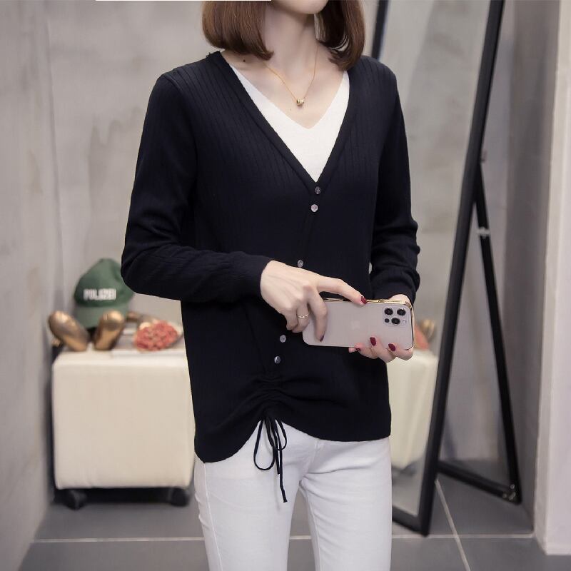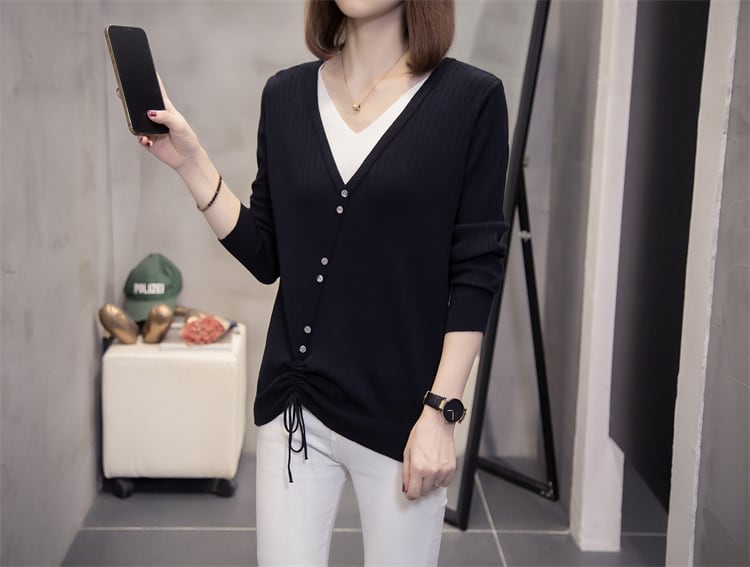 ルーズ薄手トップス オータムスタイルニットシャツ ロング 大きめサイズ 秋物 muto27863875393