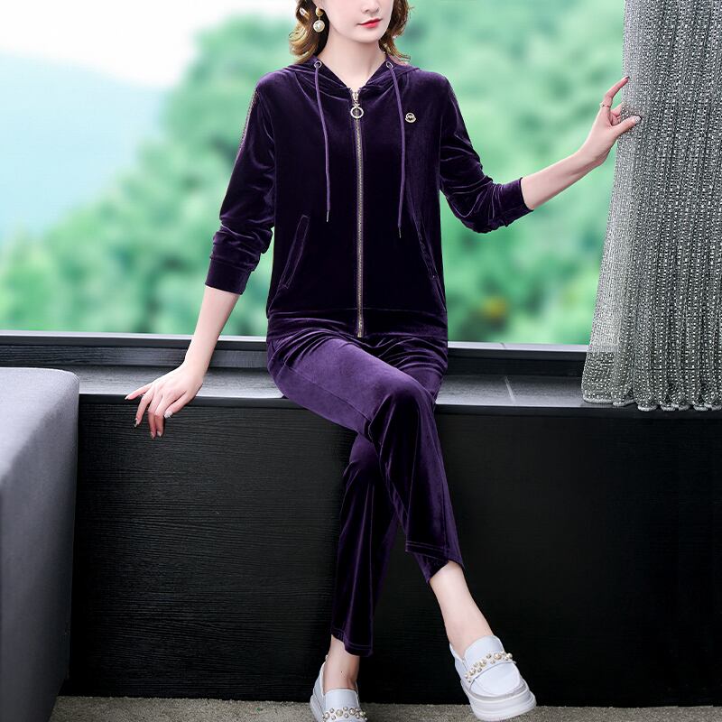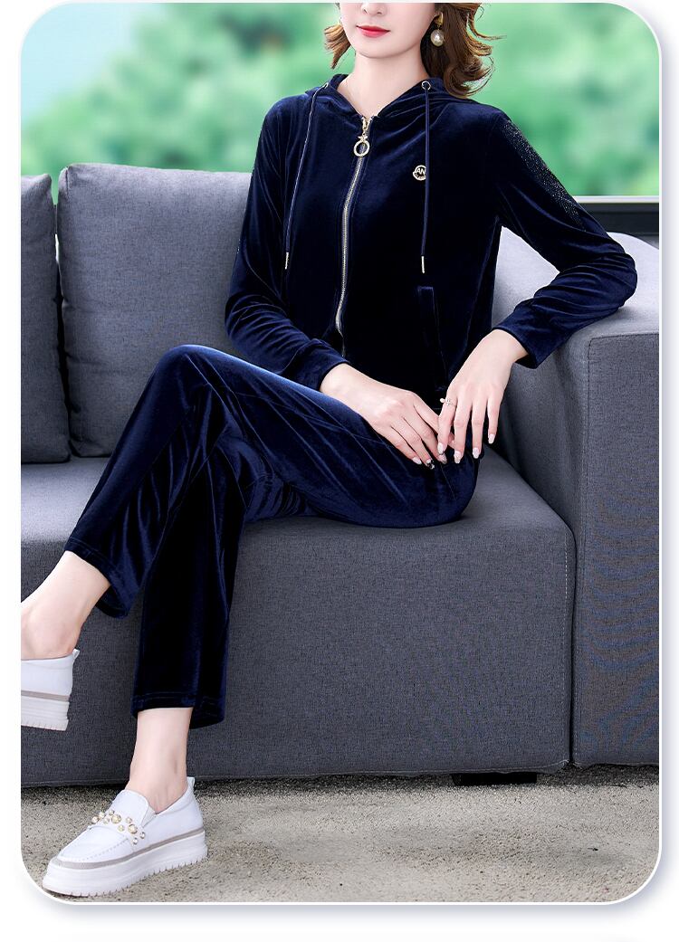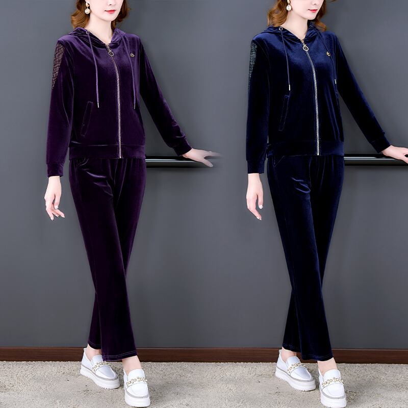 スリムフィットゴールドベルベットオータムウィンタースタイルフードカーディガン 大きめサイズ 秋物 冬物 muto30970985712
