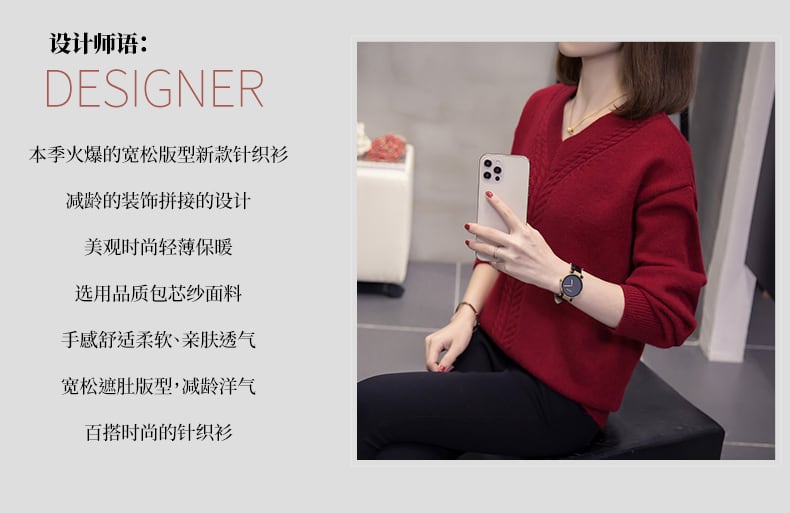 レッドセーター オータムウィンター薄手シャツ トップス 大きめサイズ 秋物 冬物 muto73910284568