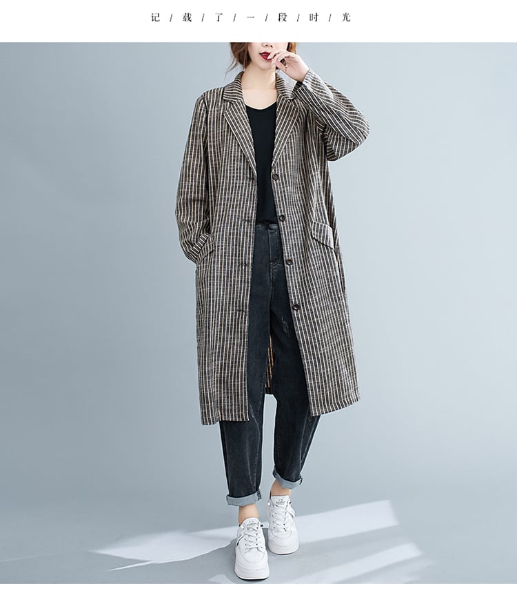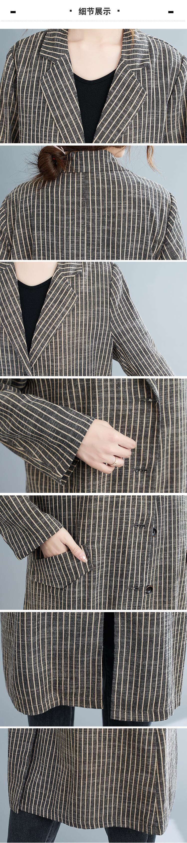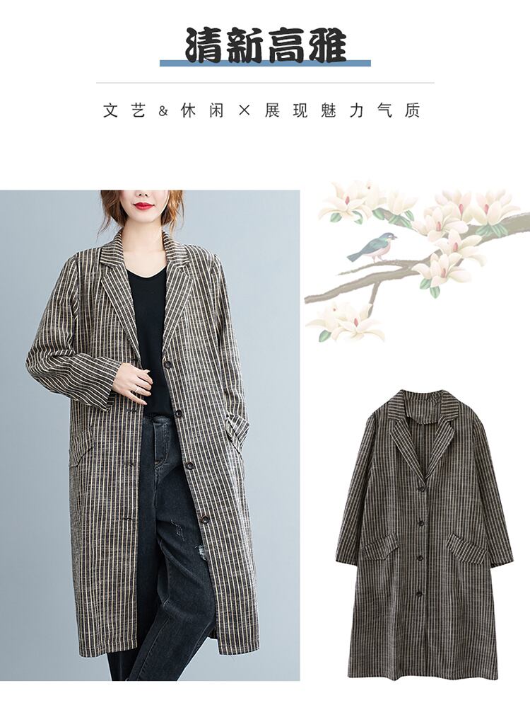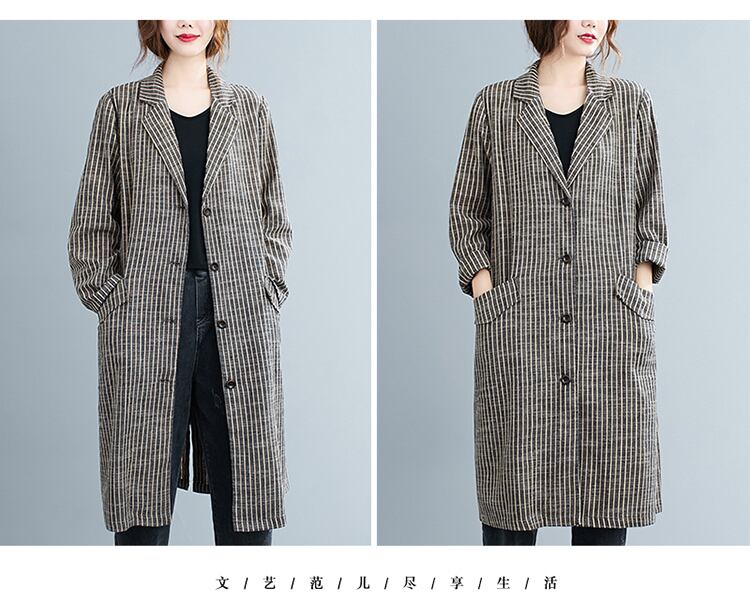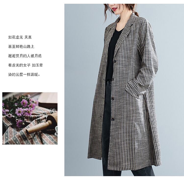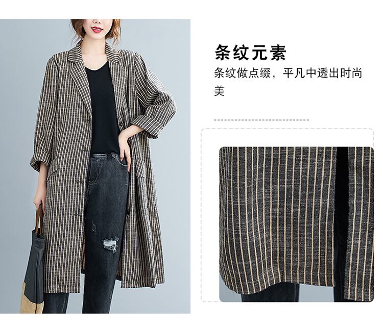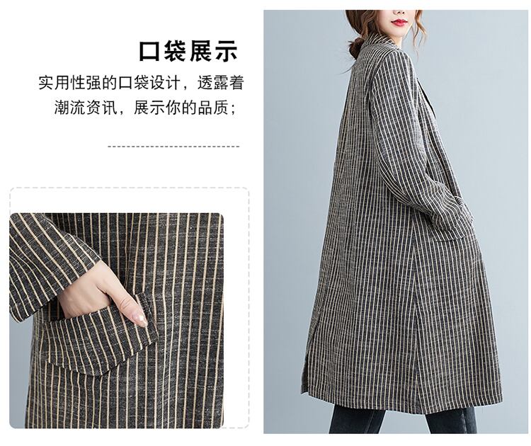 ストライプカラージャケット オータムスタンダードルーズ薄手コート カーディガン ロング コットン レトロ 大きめサイズ 秋物 muto37230099182