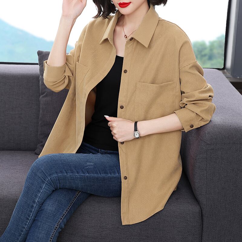 オータムカーディガンシャツ スプリングルーズ薄手コート トップス ロング 大きめサイズ 春物 秋物 muto6289866128