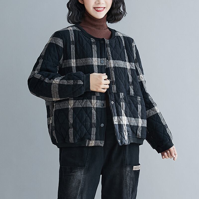 ウィンタースタンダードカジュアル格子柄ジャケット コットン レトロ 大きめサイズ 冬物 muto8375125389
