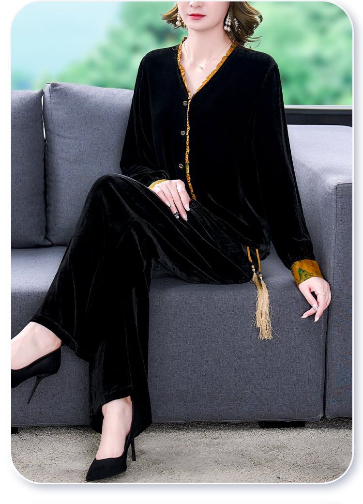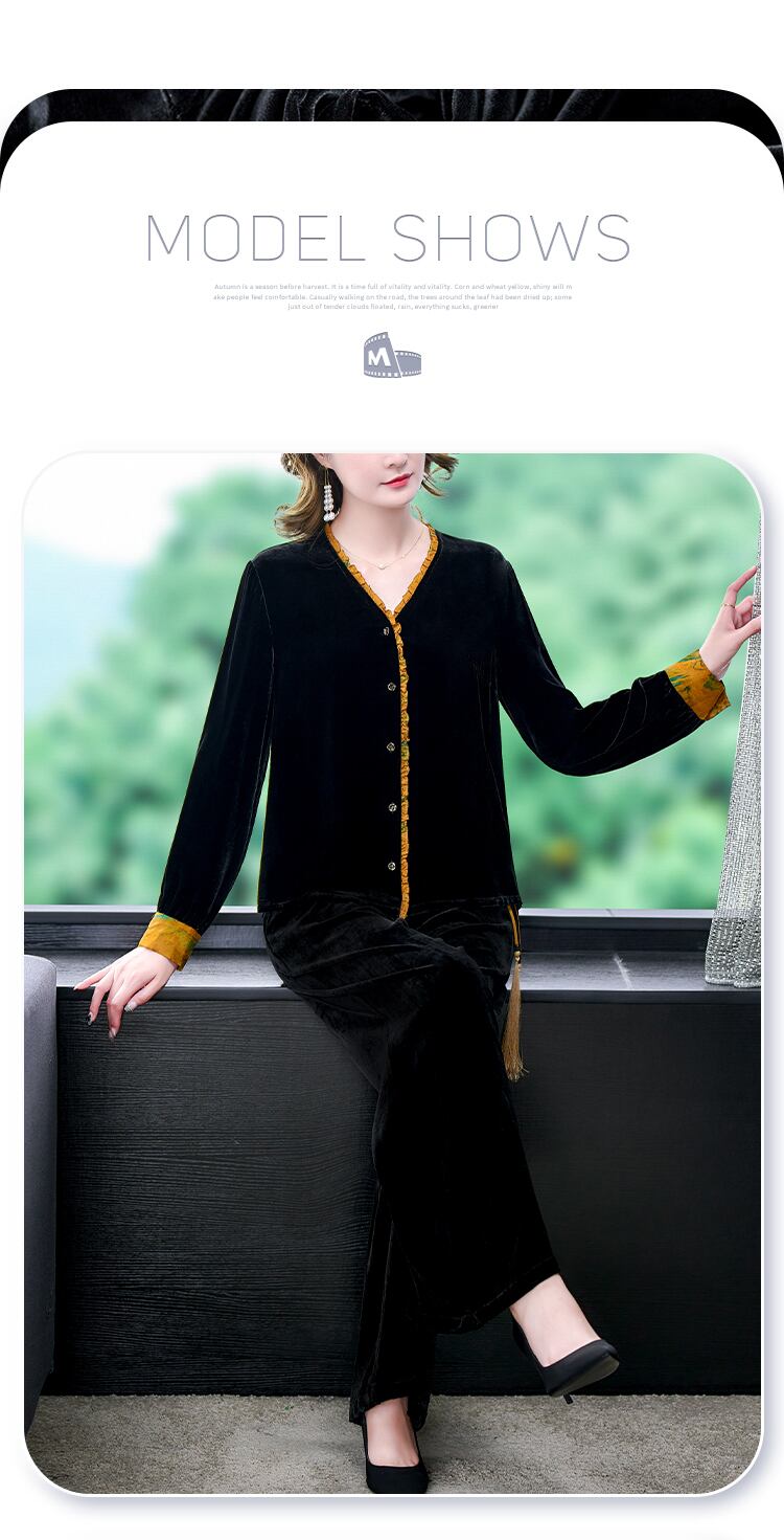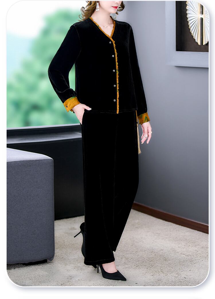 スリムフィットゴールドベルベットオータムウィンタースタイルパンツ セット 大きめサイズ 秋物 冬物 muto511150495