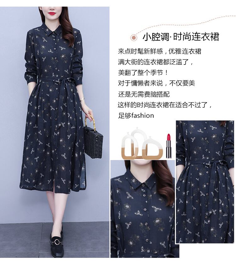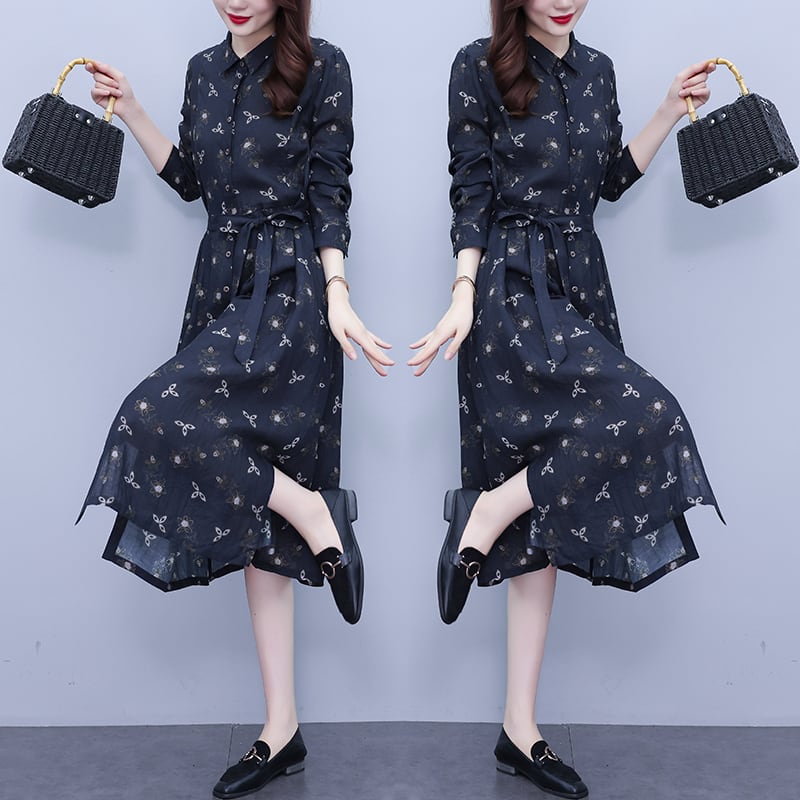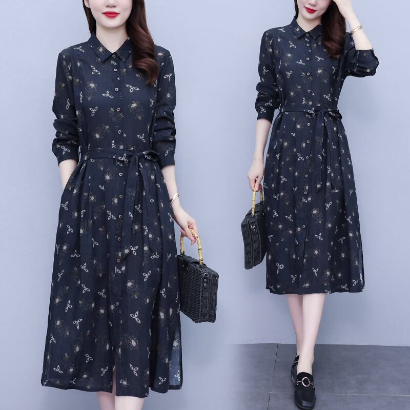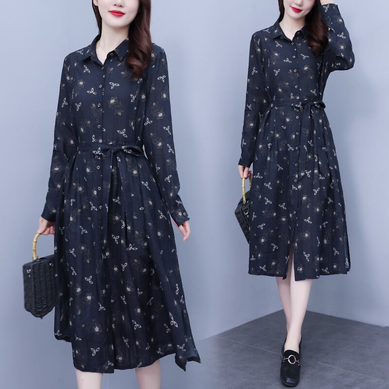 フローラルシャツ ドレス オータムレース長袖スリーブスカート ロング 大きめサイズ 秋物 花柄 レースアップ muto47592830151