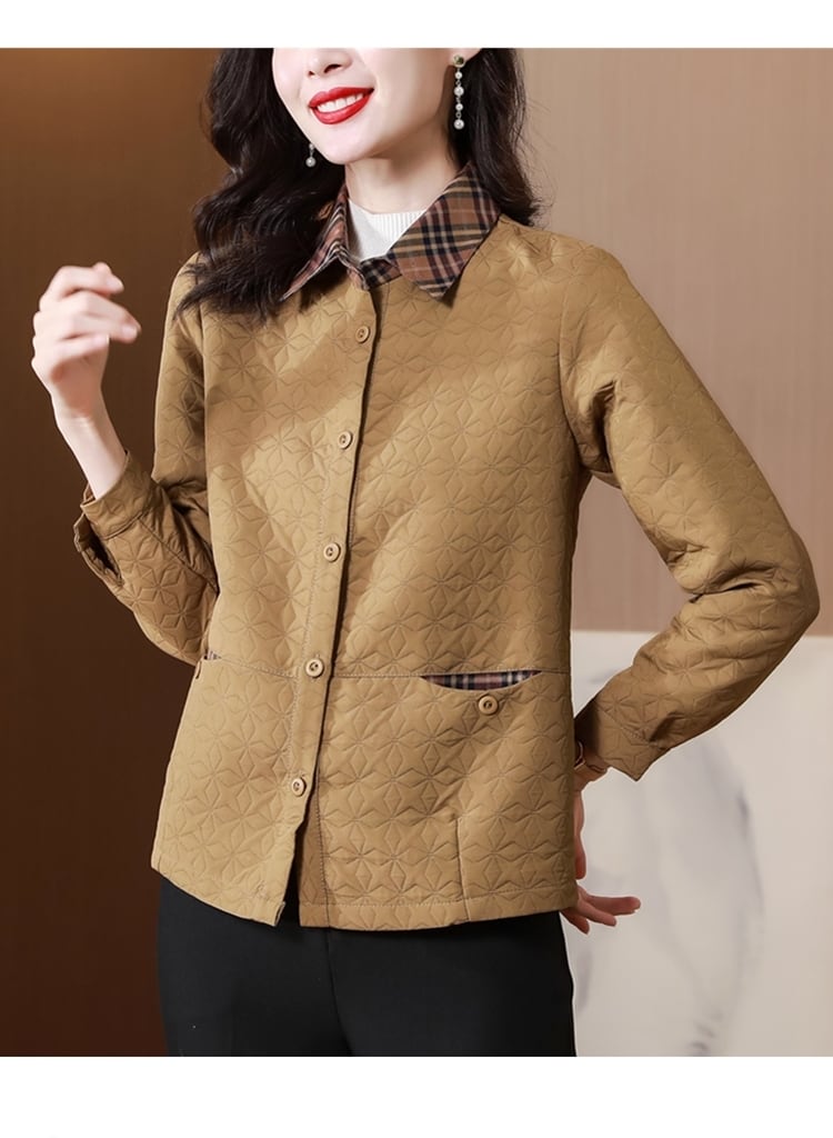 ショートジャカードジャケット オータムウィンターカジュアル格子柄カラートップス 大きめサイズ 秋物 冬物 muto15321374716