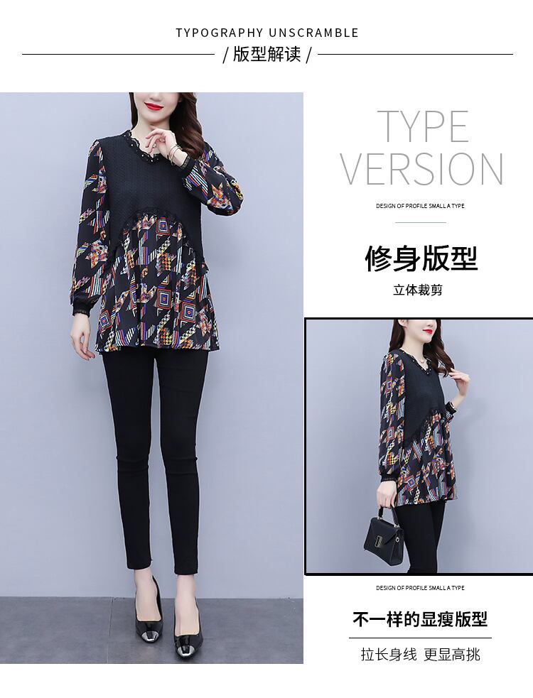 シフォンシャツ オータムルーズスタイルトップス 大きめサイズ 秋物 muto25892833441