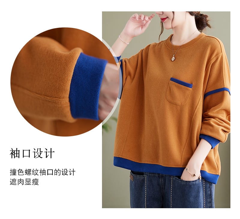 プリントラウンドネックセーター オータムウィンタースタイルルーズカジュアルプルオーバー トップス 大きめサイズ 秋物 冬物 Oネック muto14676586430
