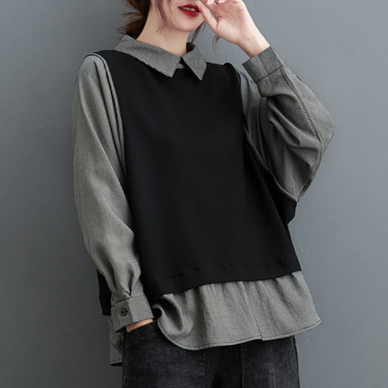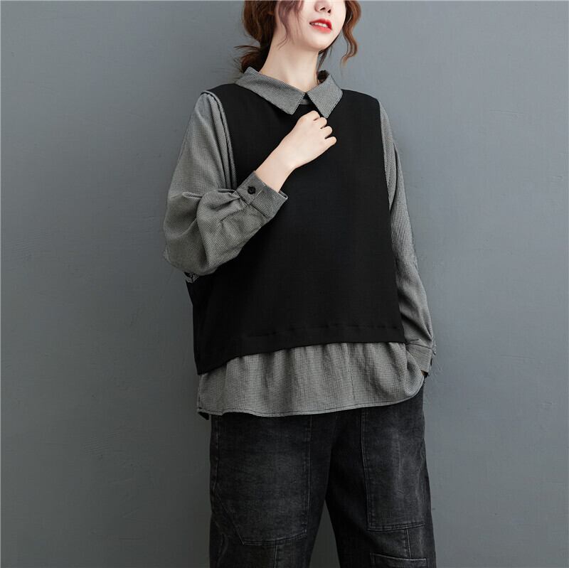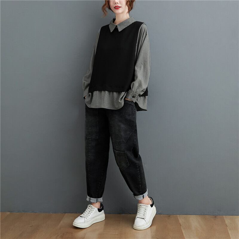 オータムツーピースニットトップス ルーズ薄手シャツ 大きめサイズ 秋物 muto37369966275