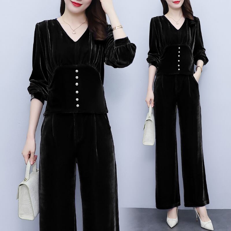 ゴールドベルベットオータムパンツ セット 大きめサイズ 秋物 muto15104618228