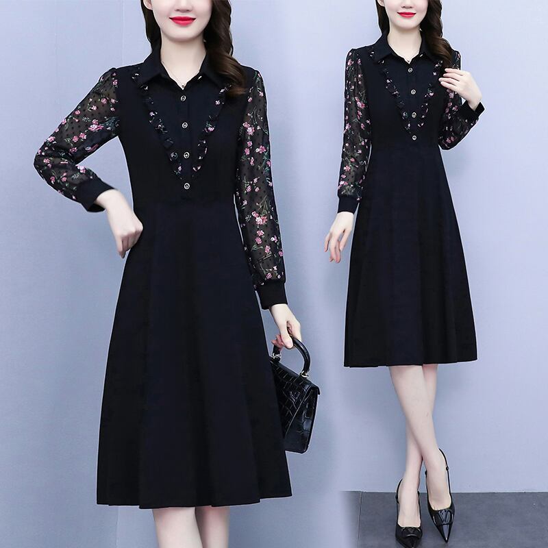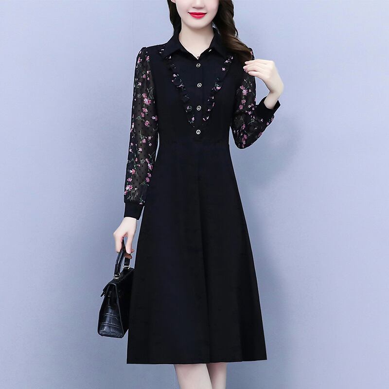 シフォンフローラルドレス オータムスカート ロング 大きめサイズ 秋物 花柄 muto78273694546