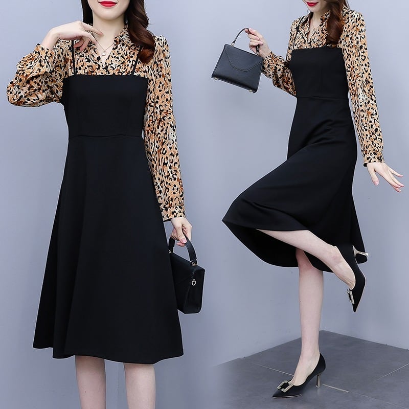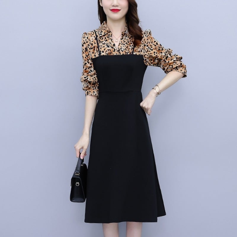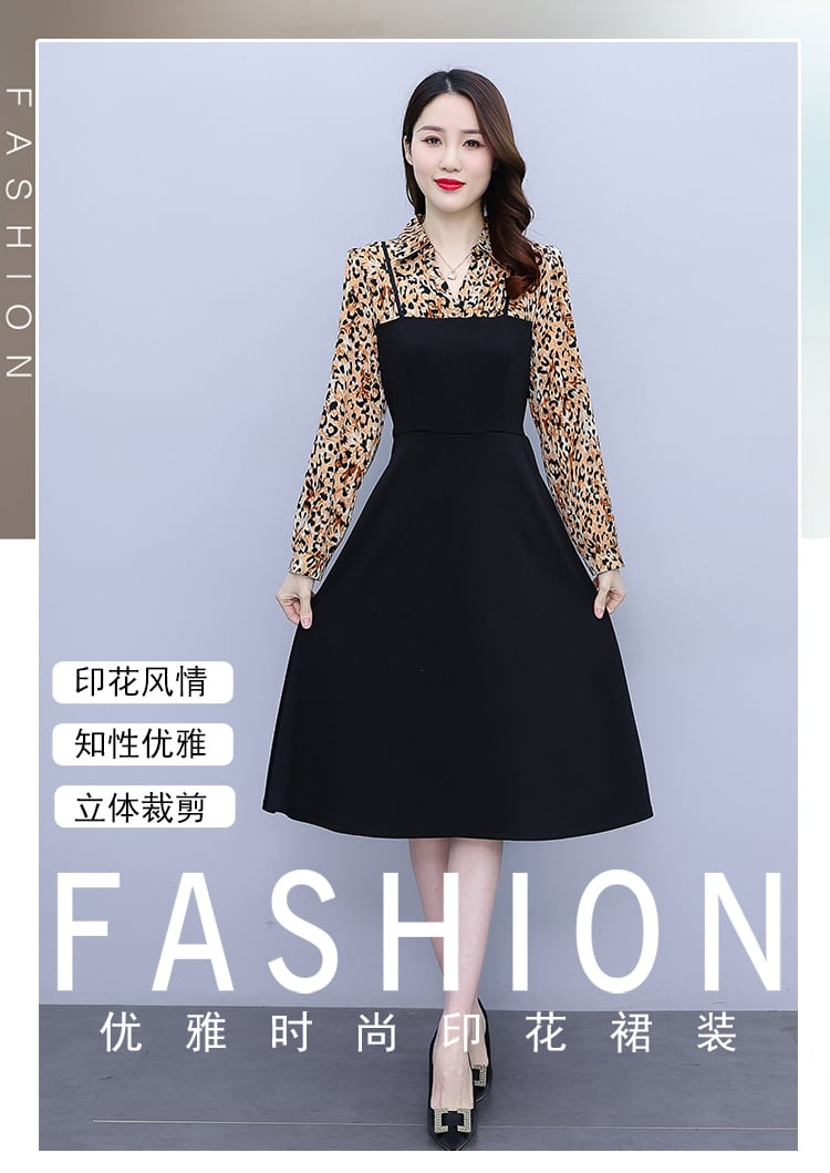 ドレス オータムウェスト薄手プリントAラインスカート 大きめサイズ 秋物 ステッチ muto61963059094