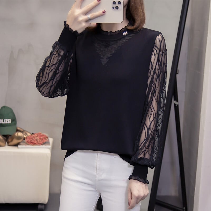 シャツ セーター オータムルーズ薄手レースニットトップス ロング 大きめサイズ 秋物 muto15306237767