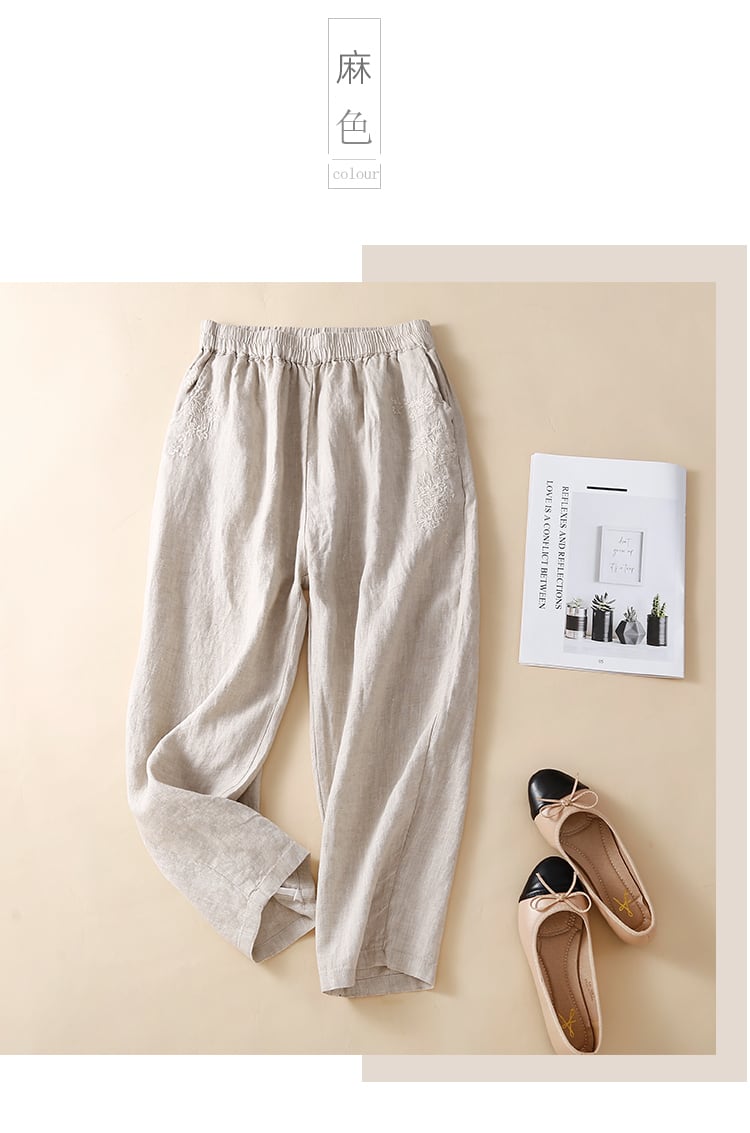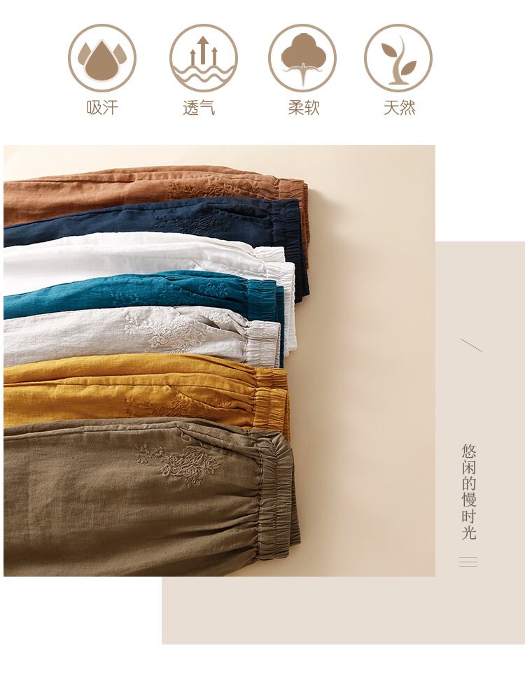 パンツ オータムルーズハイウェストウェスト薄手カジュアル レッド コットン 刺繍 大きめサイズ 秋物 muto7478628091