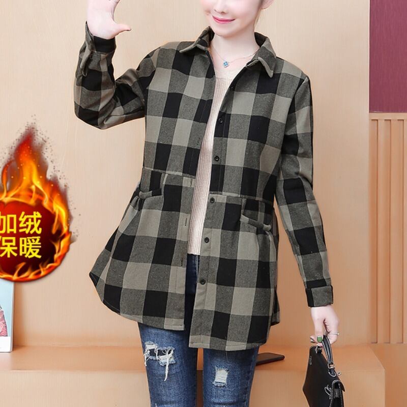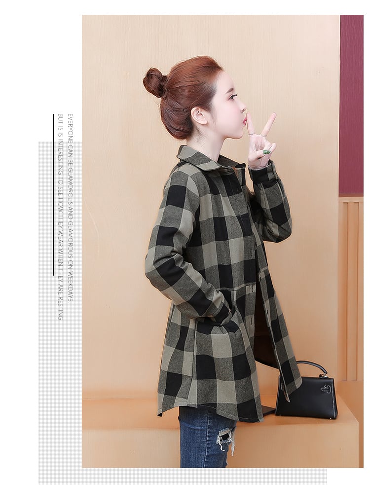 ベルベット格子柄シャツ オータムウィンタールーズ薄手コート ロング 大きめサイズ 秋物 冬物 muto62206846459