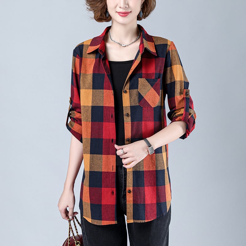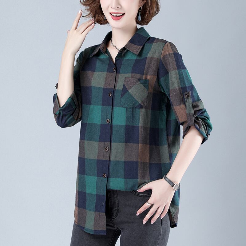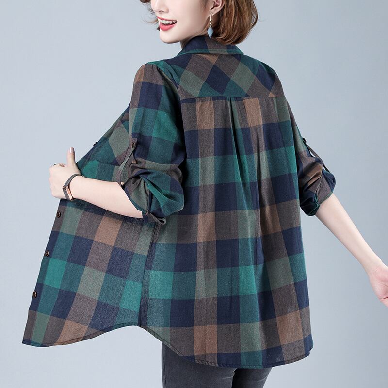 格子柄シャツ スプリングオータムスタイルカジュアルコート ロング 大きめサイズ 春物 秋物 muto50856760894
