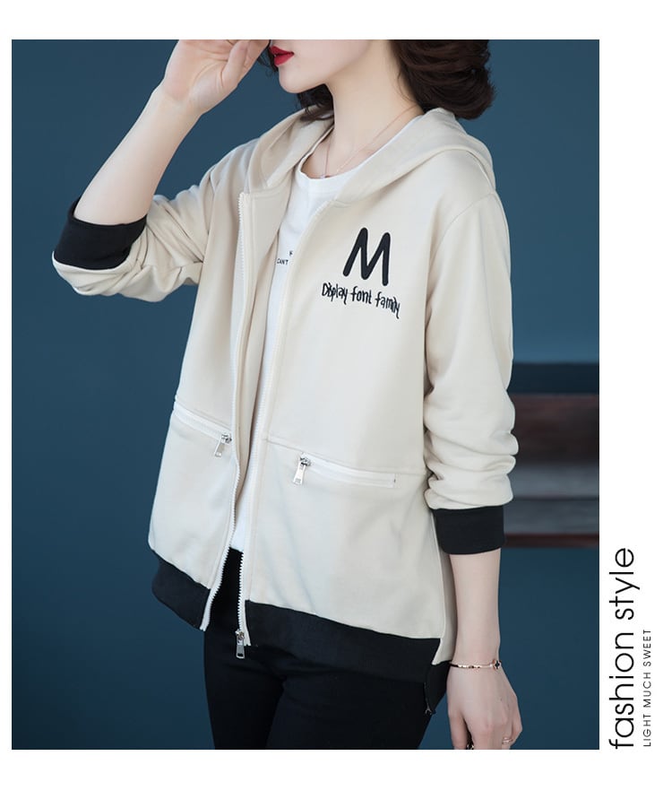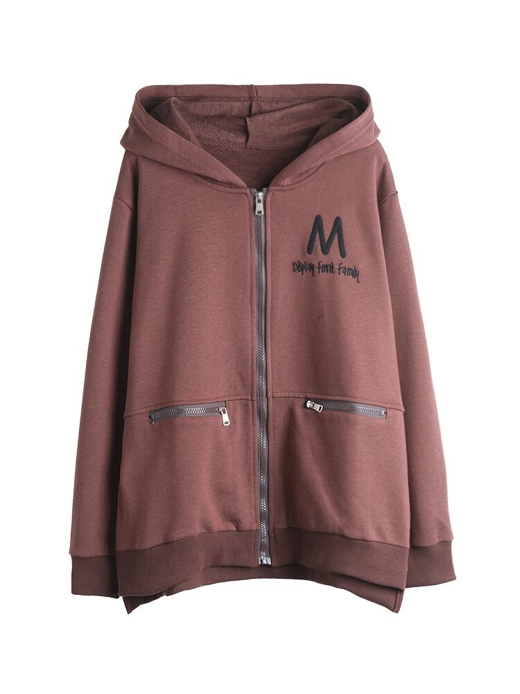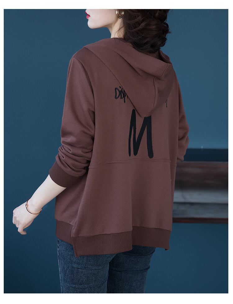 フードジッパーセーター コート スプリングオータムルーズ薄手カーディガントップス レッド 刺繍 大きめサイズ 春物 秋物 muto32442099826