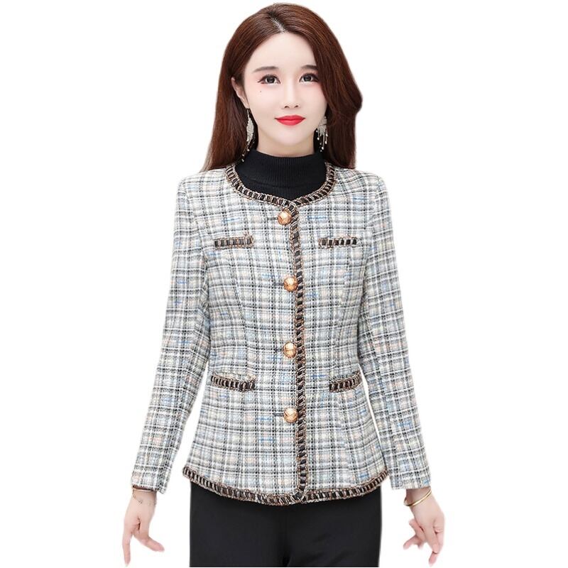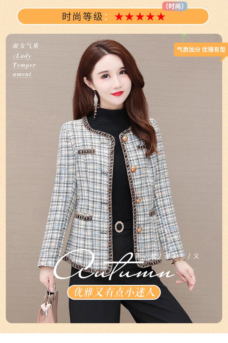格子柄ショートコート オータム薄手トップス 大きめサイズ 秋物 muto58791291081