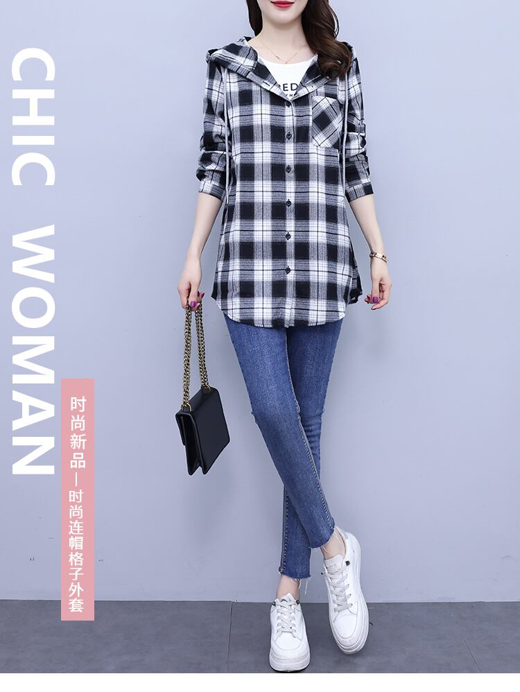 格子柄コート オータムカジュアルシャツトップス ロング 大きめサイズ 秋物 muto24492502607