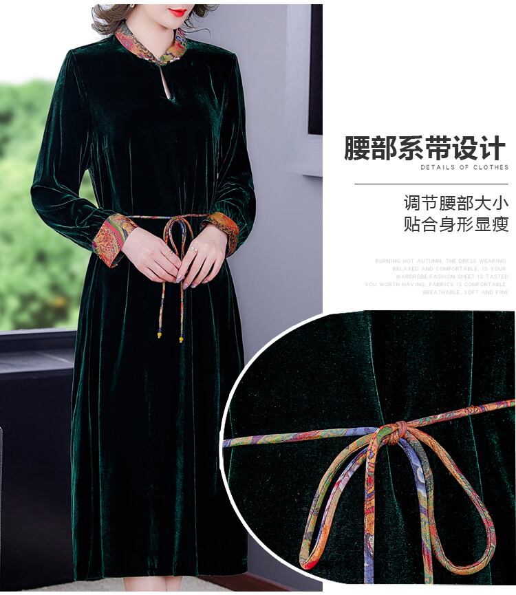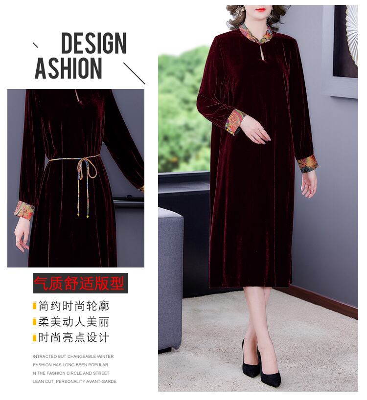 ゴールドベルベットドレス オータムウィンター薄手スタイルルーズスカート 大きめサイズ 秋物 冬物 muto62457834374
