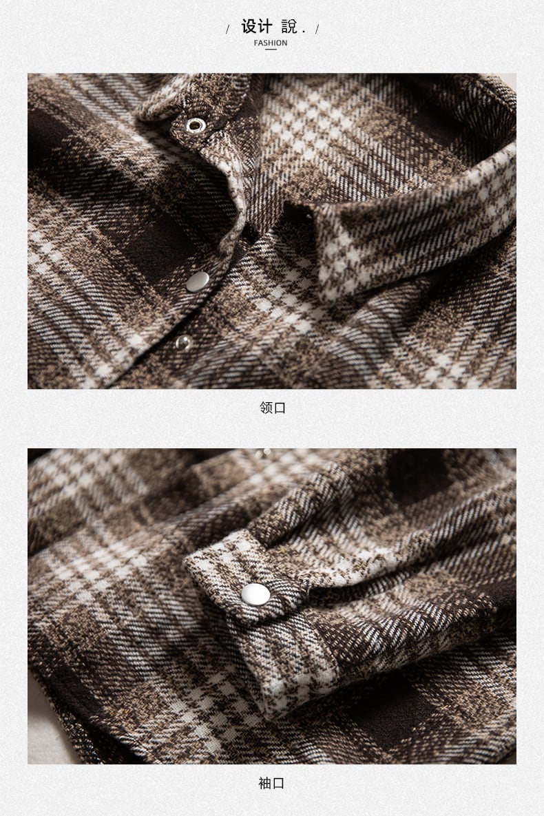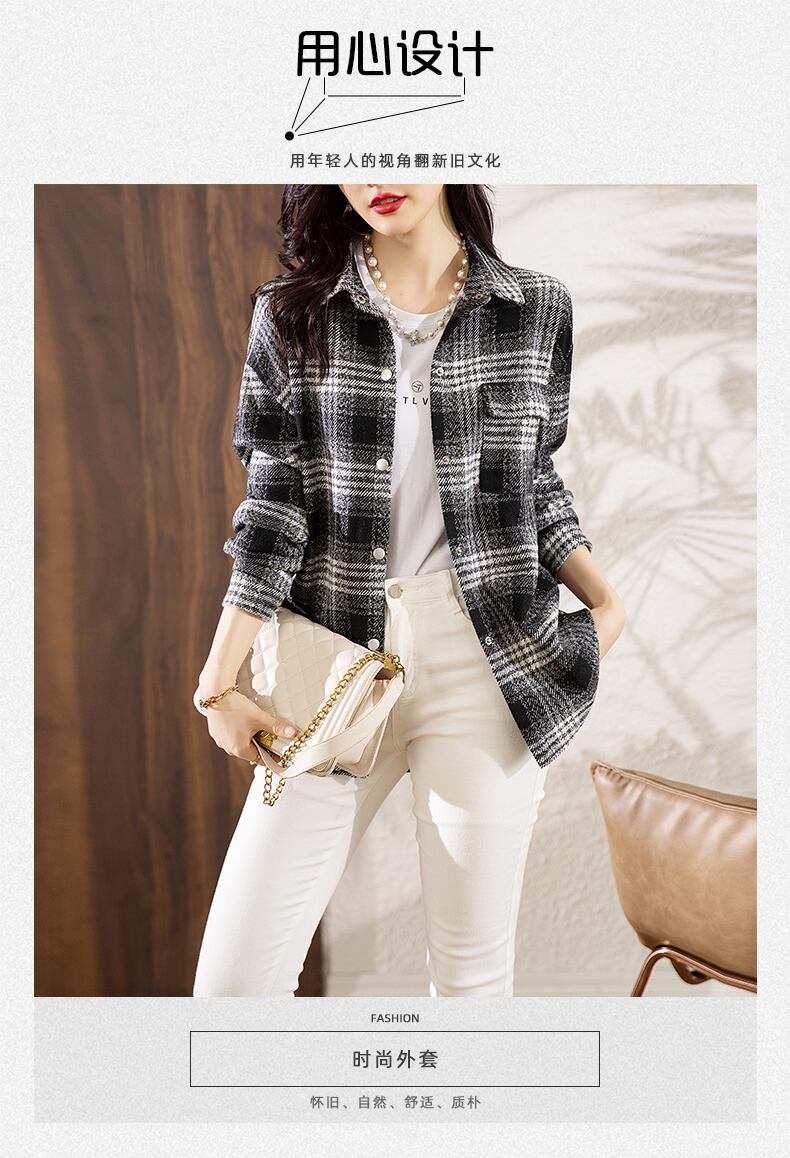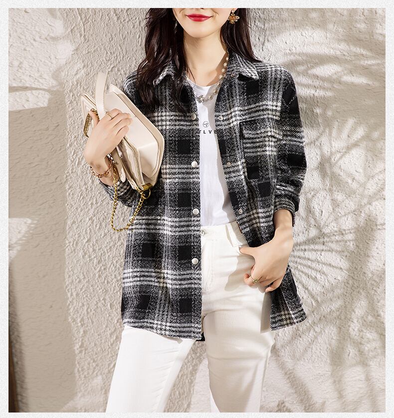 格子柄シャツ オータムウィンタールーズスタンダードカジュアルジャケット トップス ロング レトロ 大きめサイズ 秋物 冬物 muto47321783542