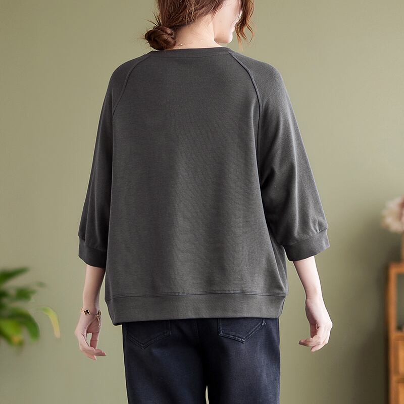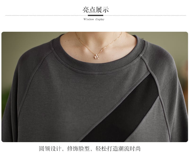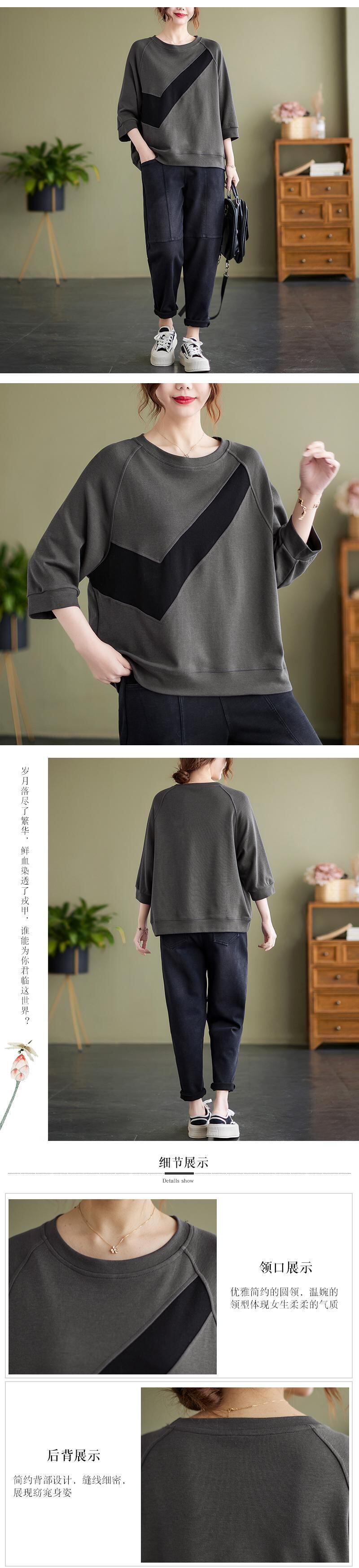 スタンダードカラーラウンドネックセーター オータムカジュアルプルオーバー ルーズトップス ロング レトロ 大きめサイズ 秋物 Oネック muto63746584846