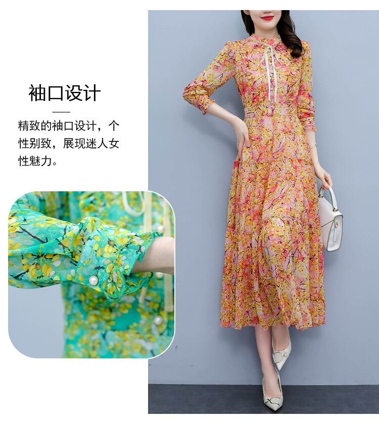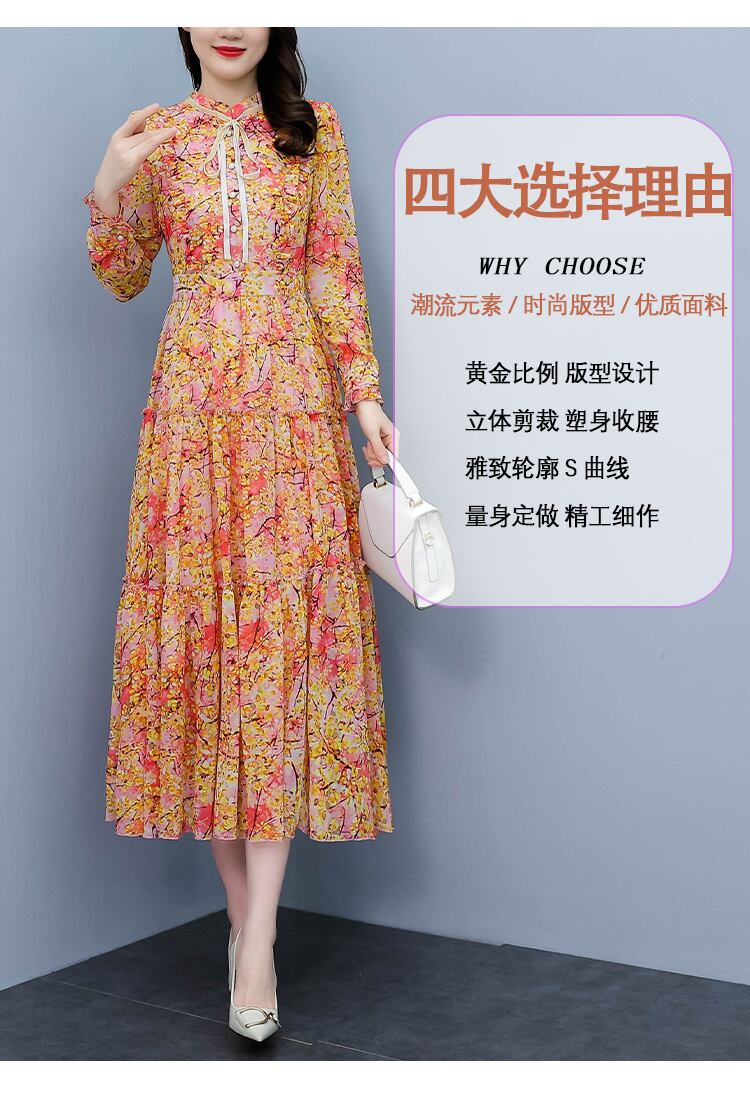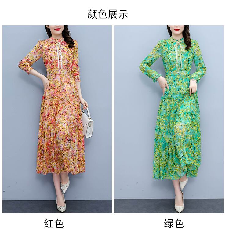 シフォンドレス オータム薄手フローラルスカート ロング 大きめサイズ 秋物 花柄 muto9299209298