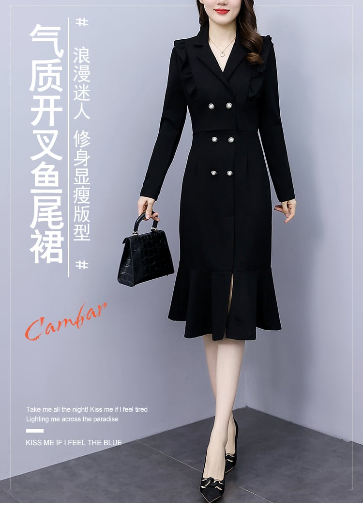 ダブルブレストドレス ウェストスリムスカート 大きめサイズ muto92658764723