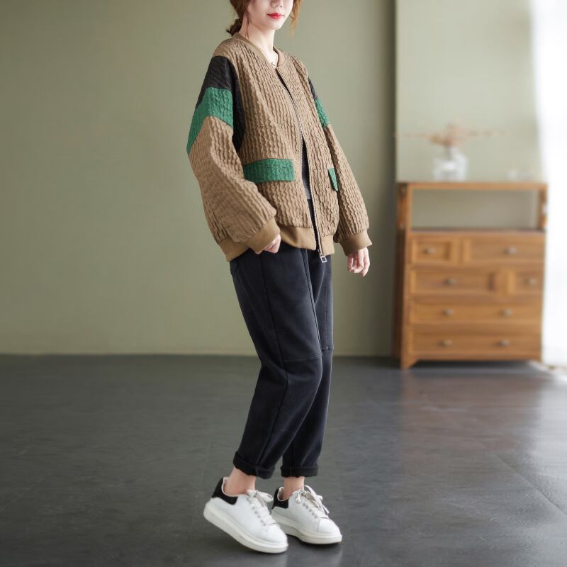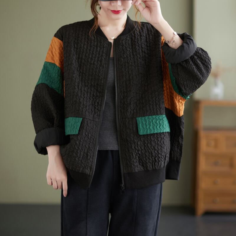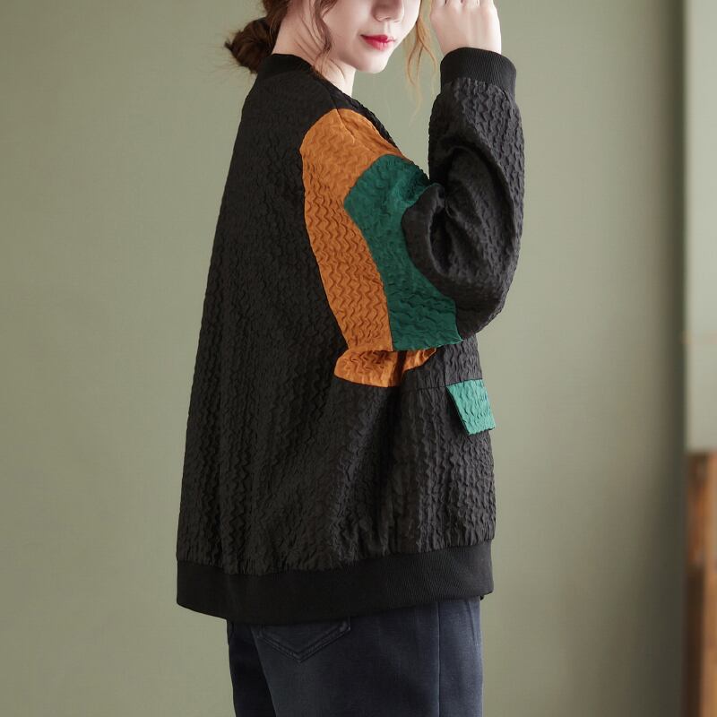 オータムジャケット カジュアルルーズ薄手ショートトップス 大きめサイズ 秋物 muto5192765674