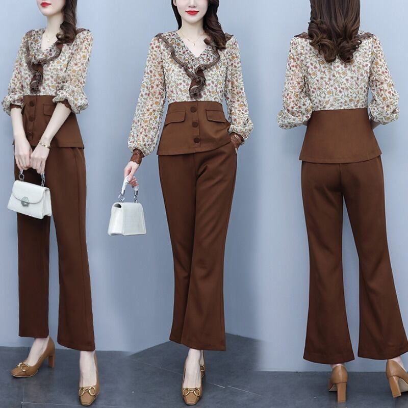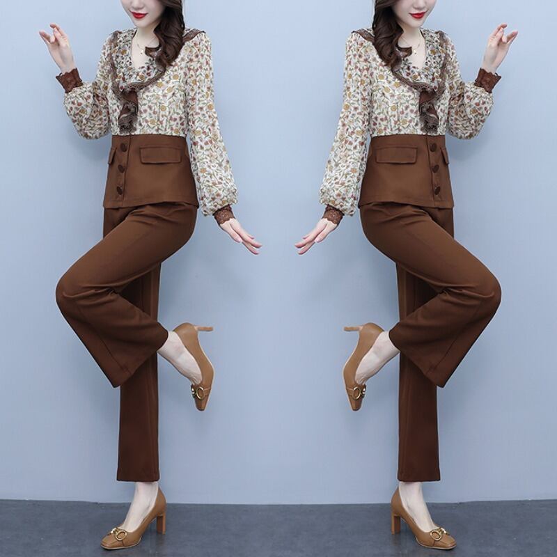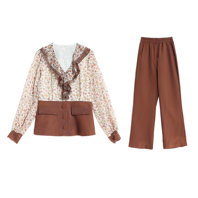 パンツ オータムスタイルフローラルシャツ セット ロング 大きめサイズ 秋物 花柄 muto64389219271