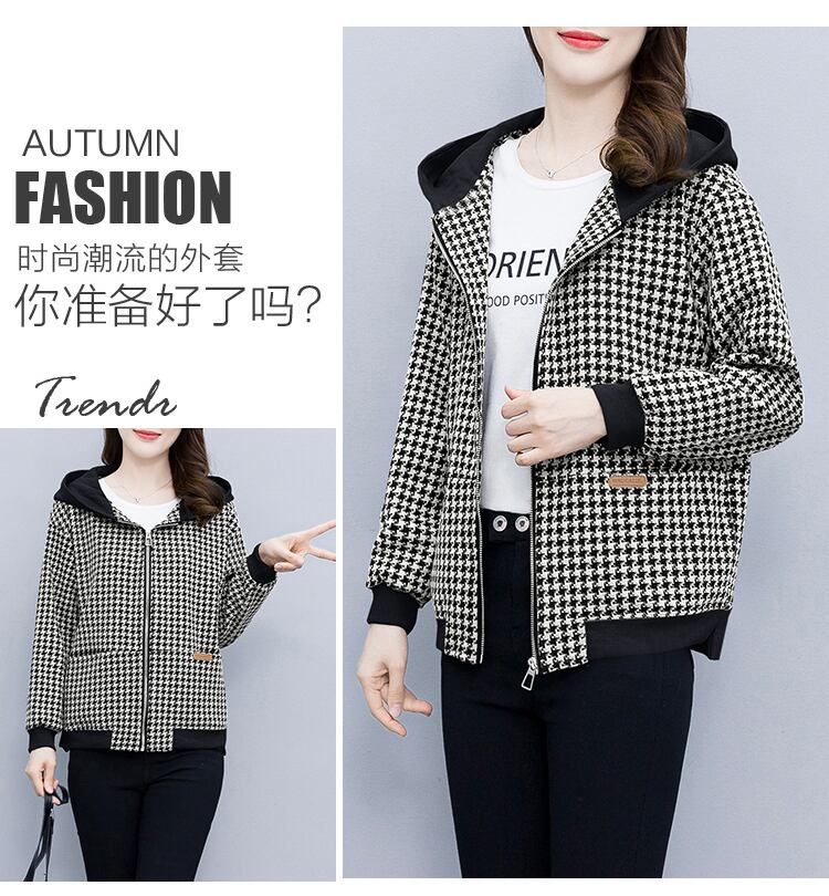 ショートコート オータムカジュアルスタイル薄手ジャケット 格子柄トップス 大きめサイズ 秋物 muto14384587979