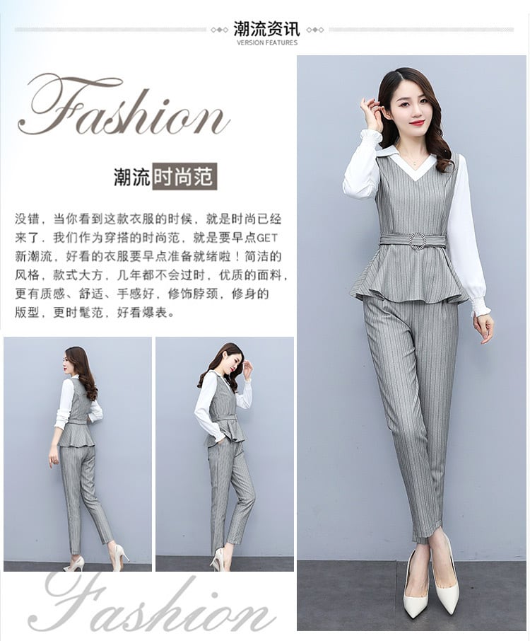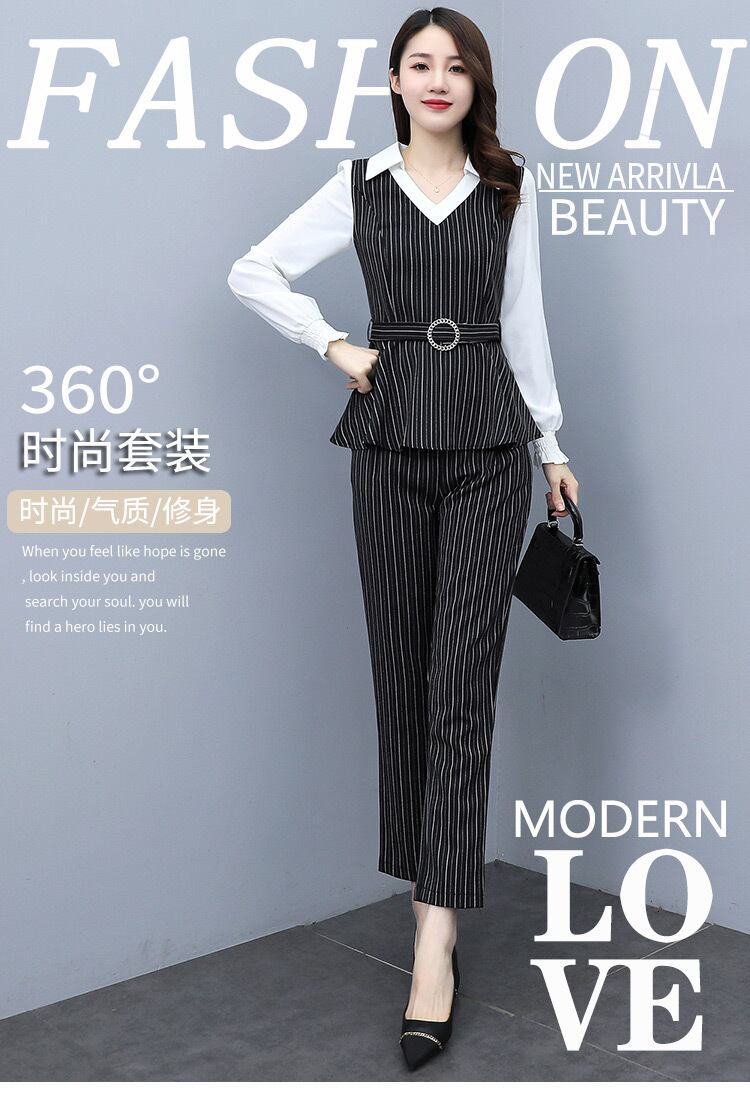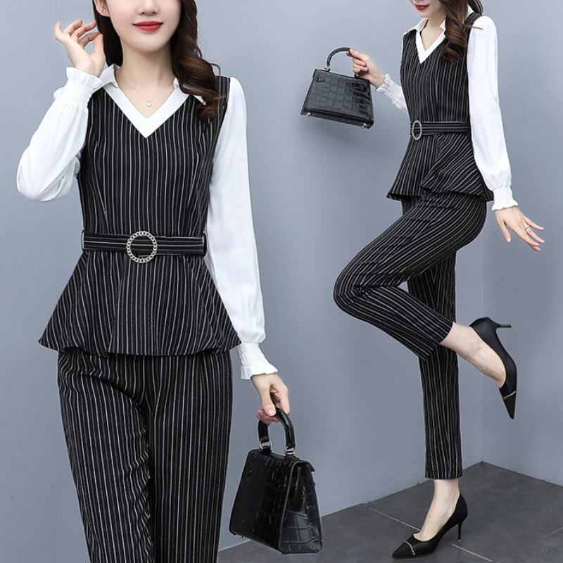 ストライプオータムスタイルパンツ セット 大きめサイズ 秋物 muto1838534475