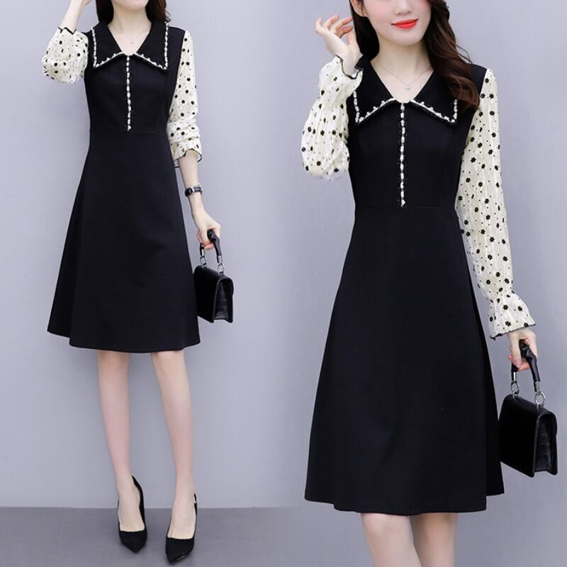 ドレス オータムスリムスタンダードブラック レトロ 大きめサイズ 秋物 muto58706849710