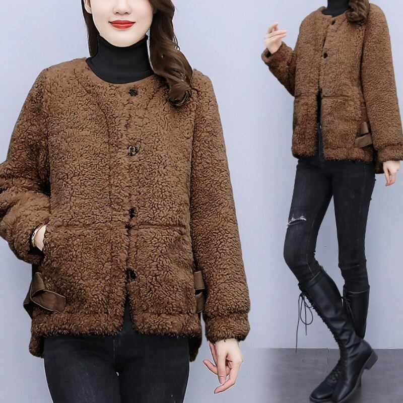 ウールショートコート オータムウィンターベルベットファージャケット コットン 大きめサイズ 秋物 冬物 muto47962843583