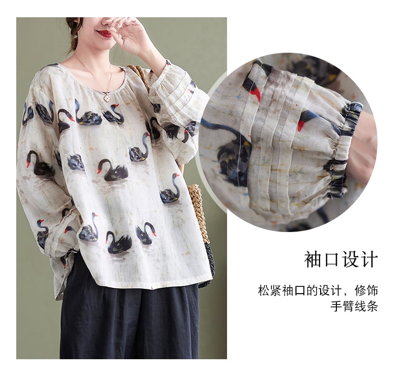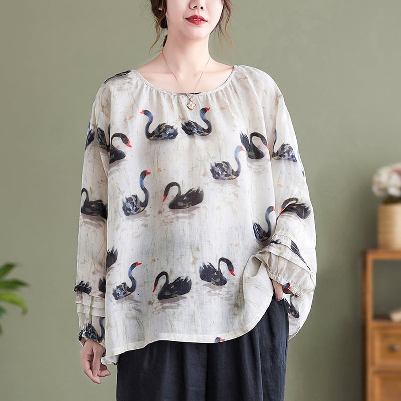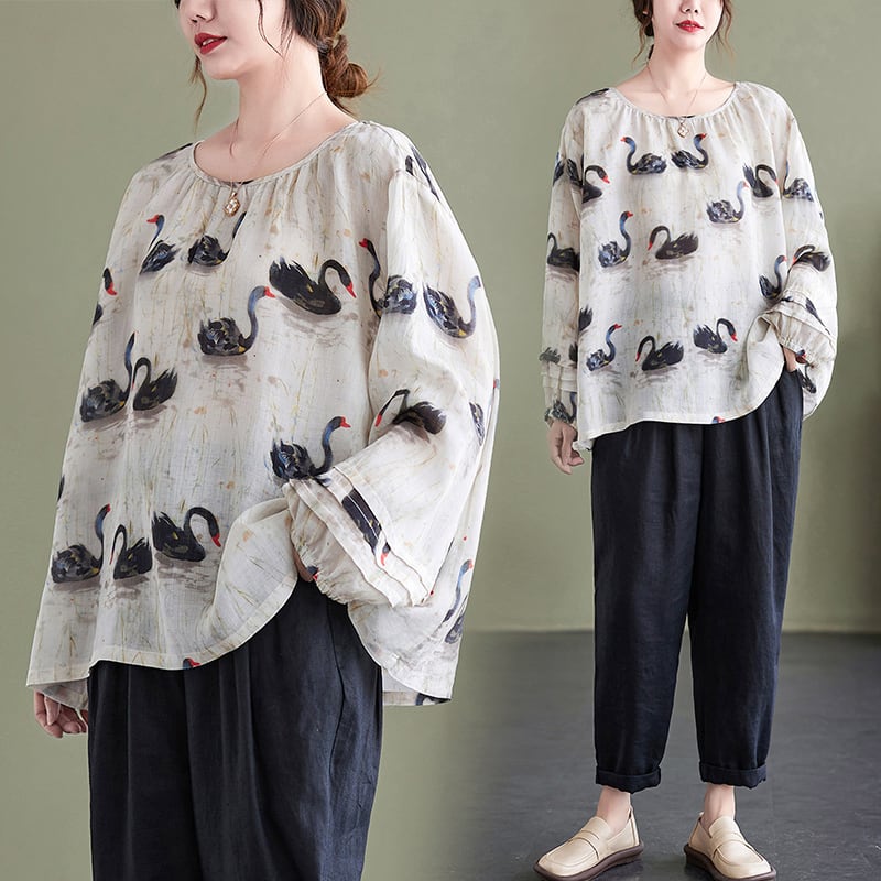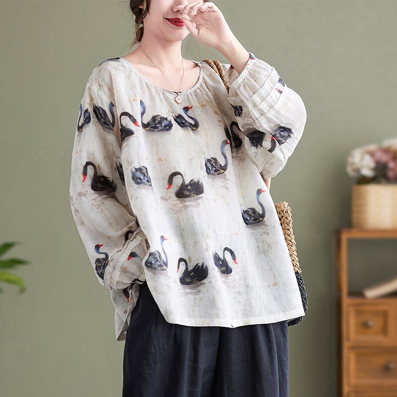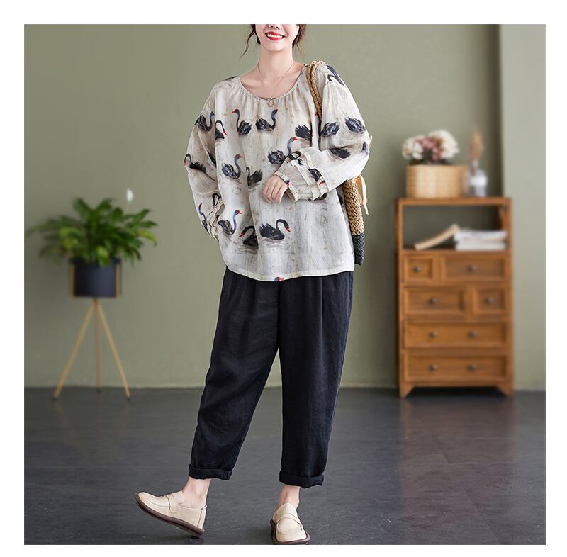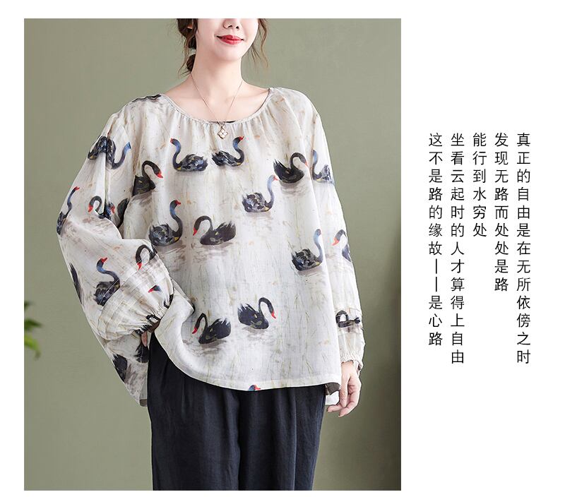 シャツ オータムスタイルトップス 薄手スリーブ ランタンスリーブ コットン 大きめサイズ 秋物 muto74476323214