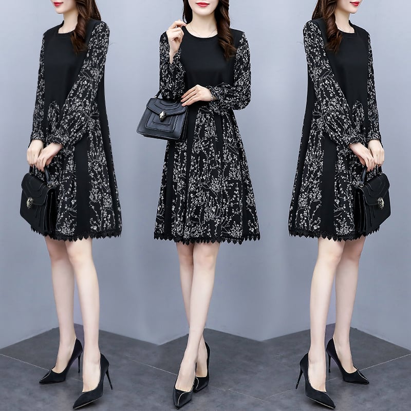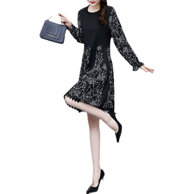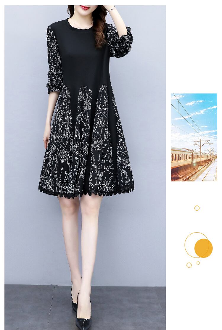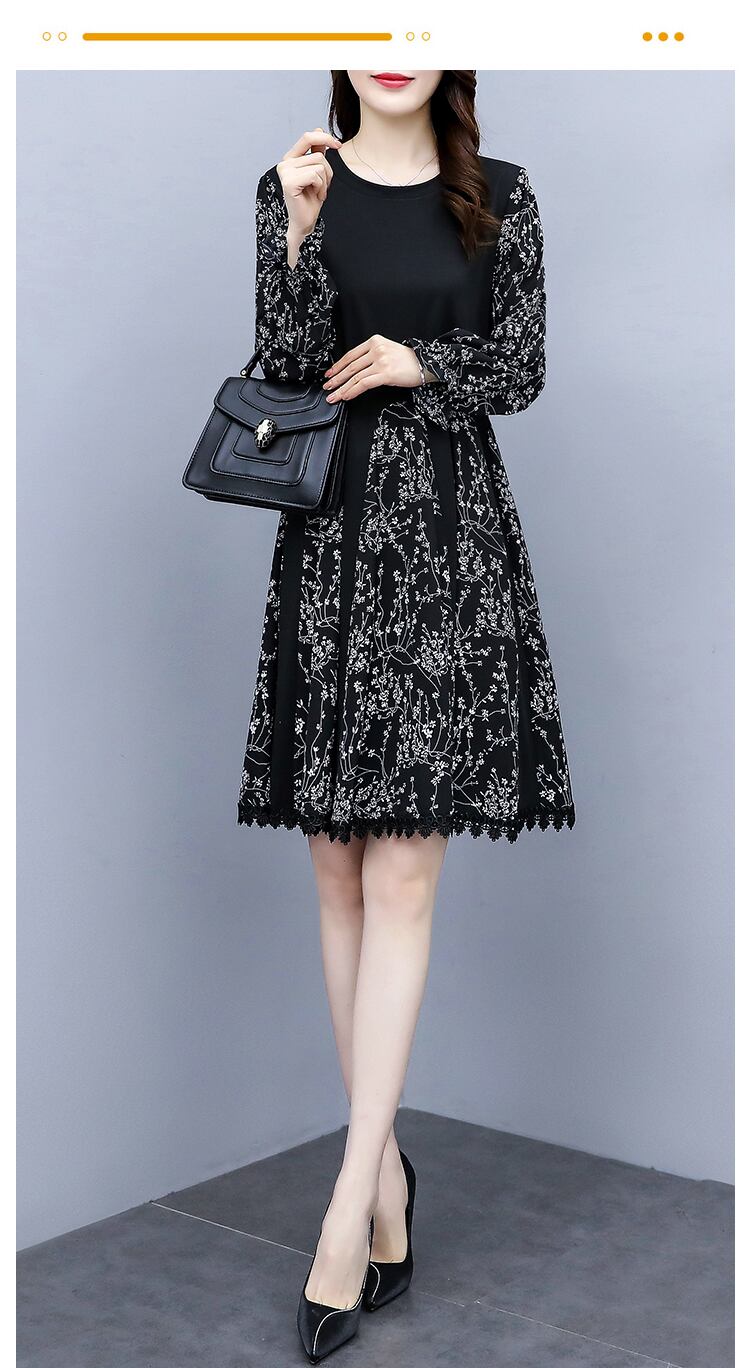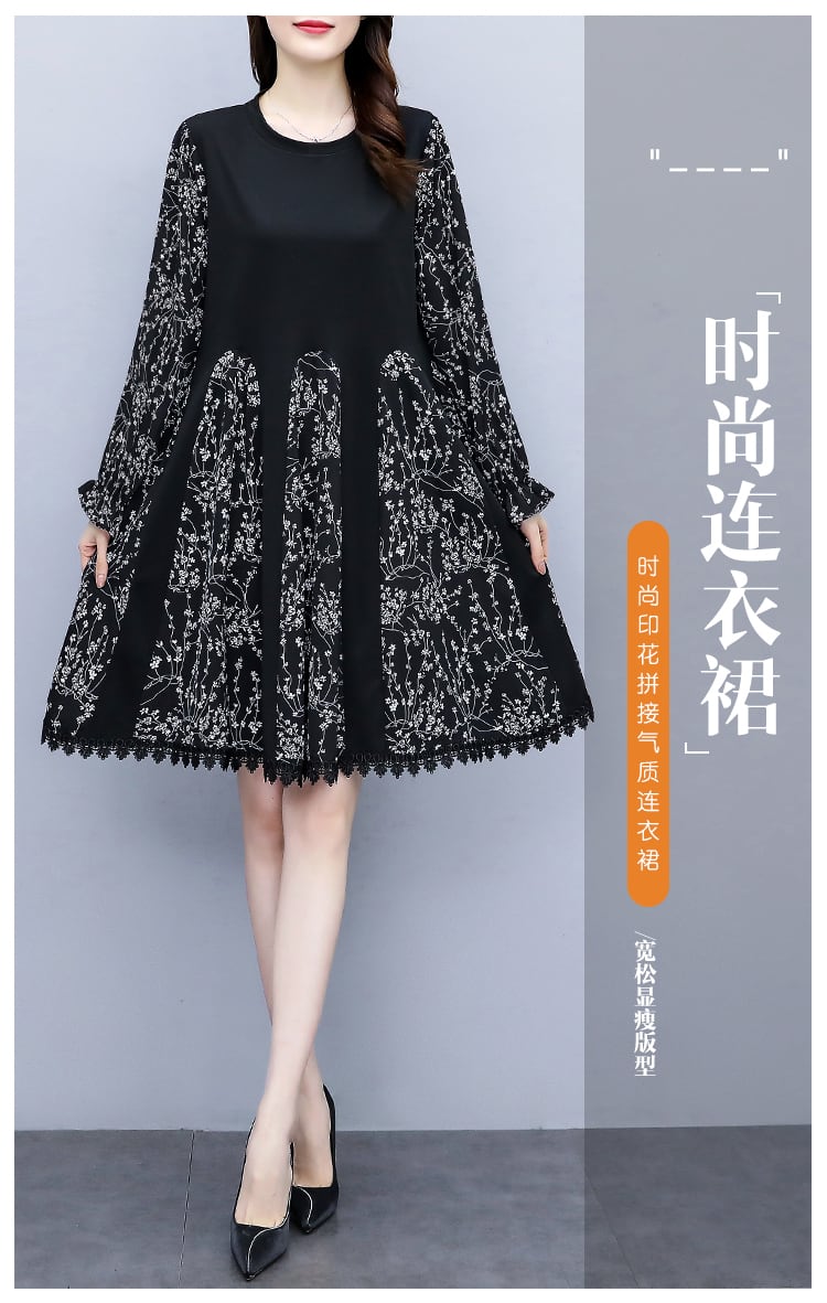 プリントドレス 薄手オータムルーズロングスカート 大きめサイズ 秋物 ステッチ muto99910740158