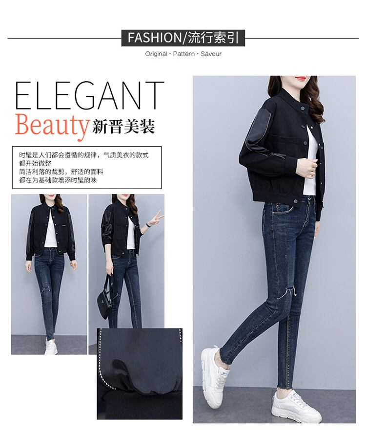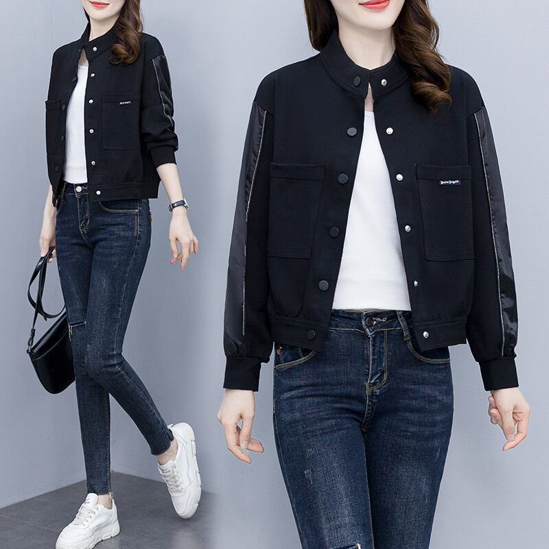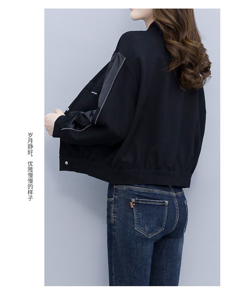 ブラックショートジャケット オータムカジュアルルーズ薄手トップス 大きめサイズ 秋物 muto25589834173