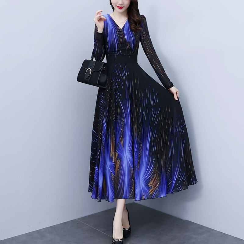 シフォンロングドレス オータムスカート 大きめサイズ 秋物 muto43457975255