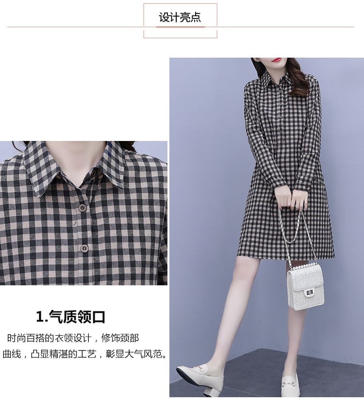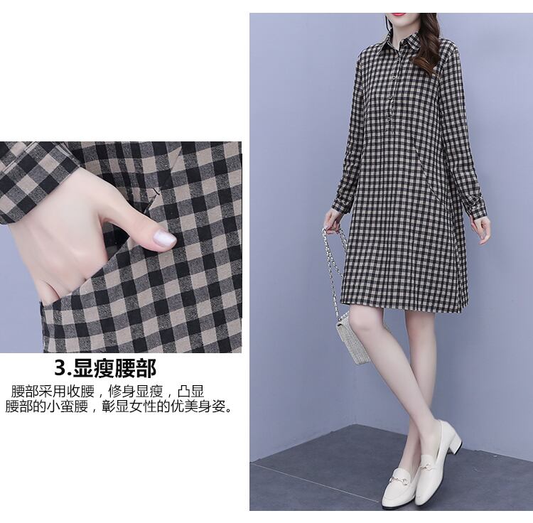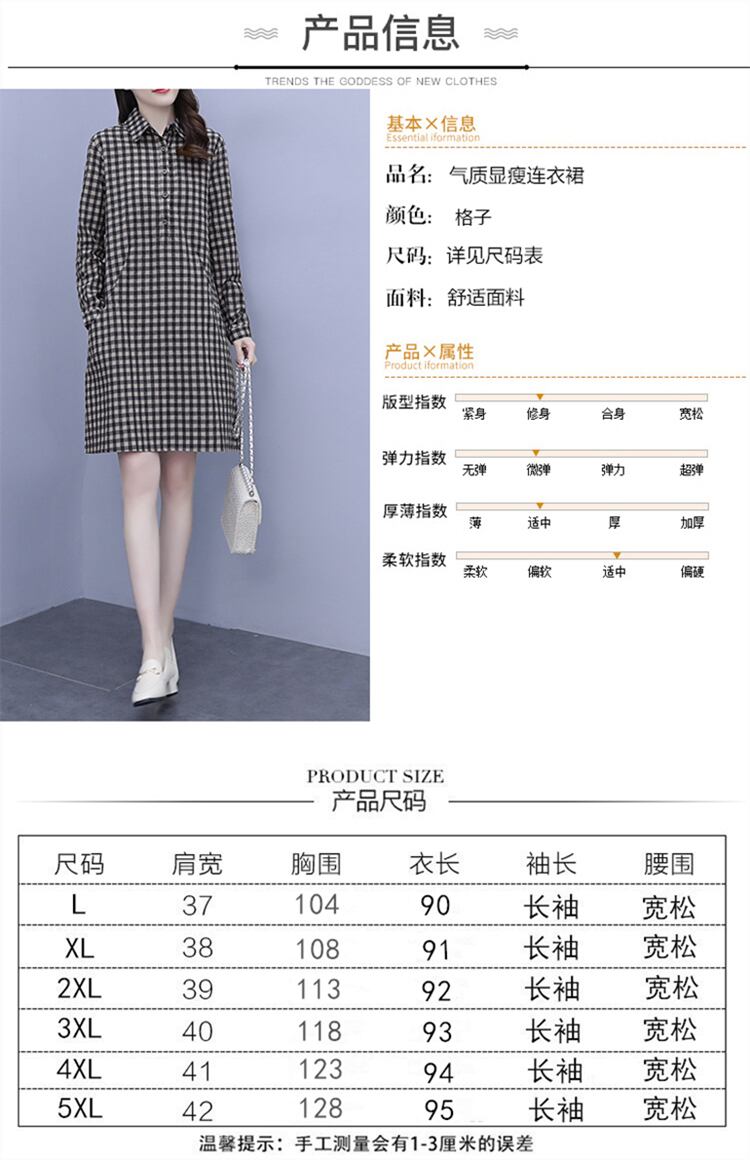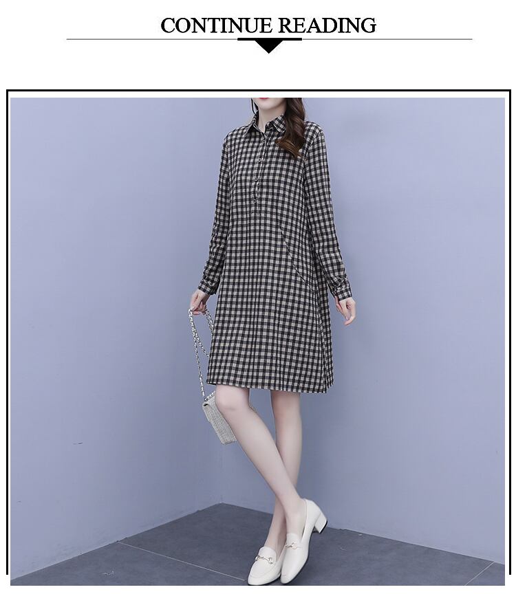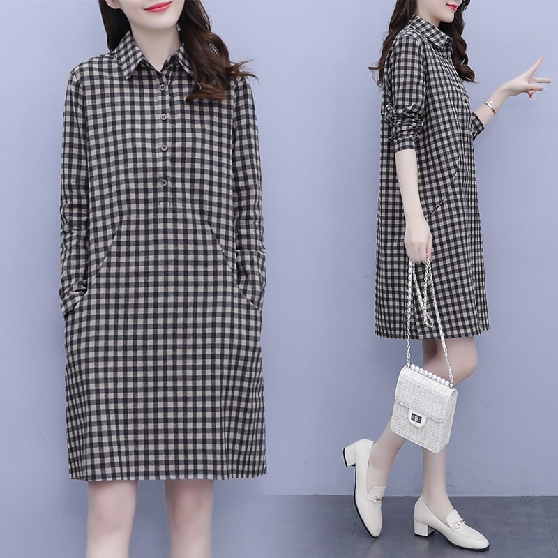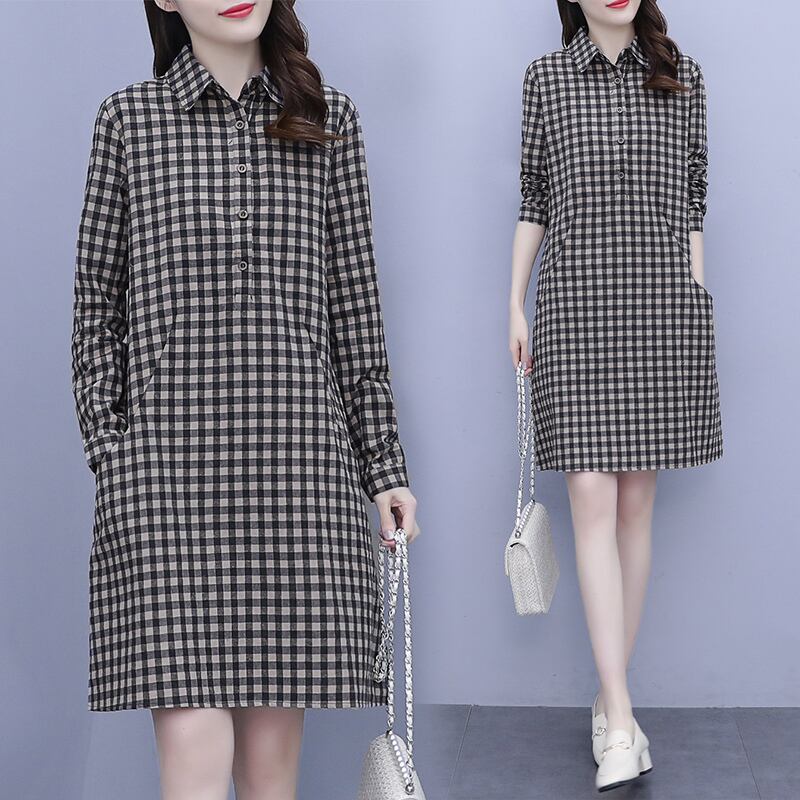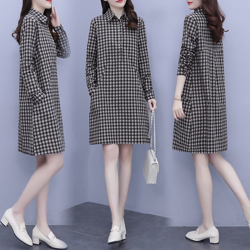 格子柄ドレス オータムルーズカジュアルシャツ スカート ロング 大きめサイズ 秋物 muto85591897380