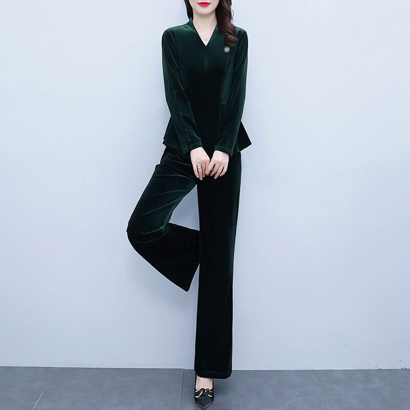 ゴールドベルベットオータムカジュアルパンツ セット 大きめサイズ 秋物 muto2762393854