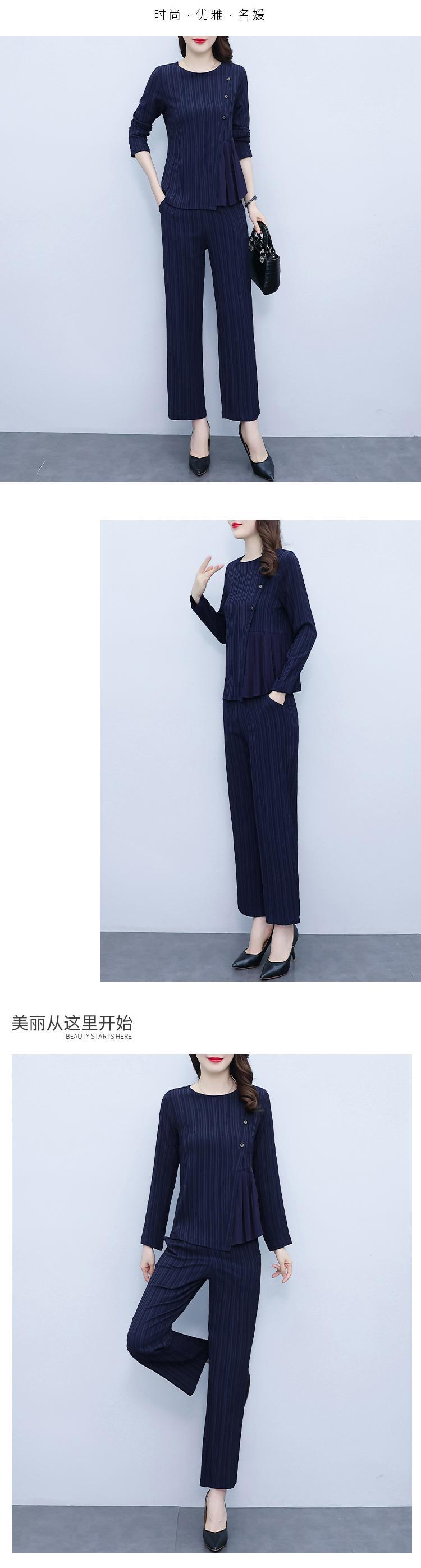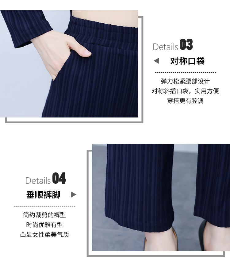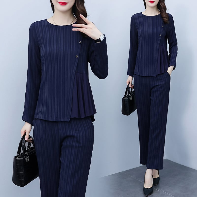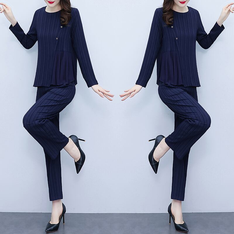 ストライプオータムスタイルスリムトップス パンツ セット ロング 大きめサイズ 秋物 muto3111135964