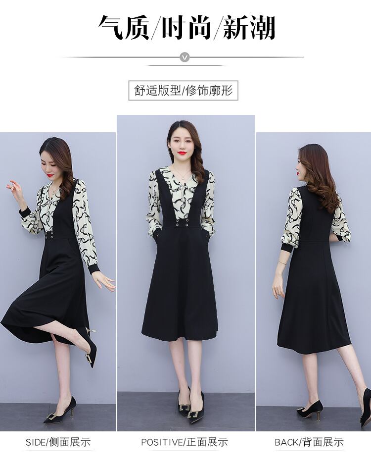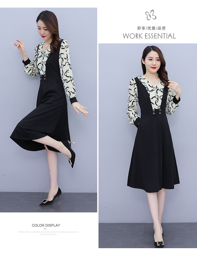 プリント柄ドレス スプリングオータム薄手スカート 大きめサイズ 春物 秋物 ステッチ muto61710042352