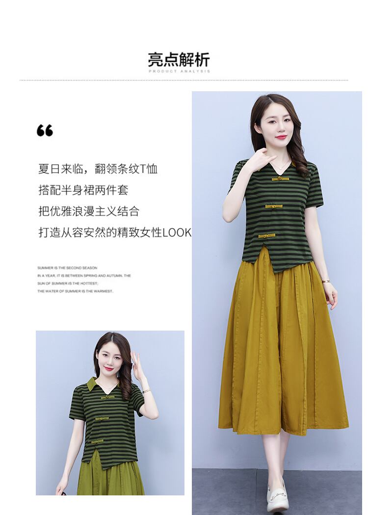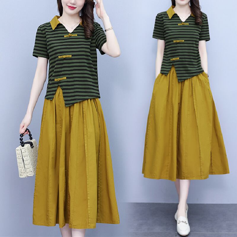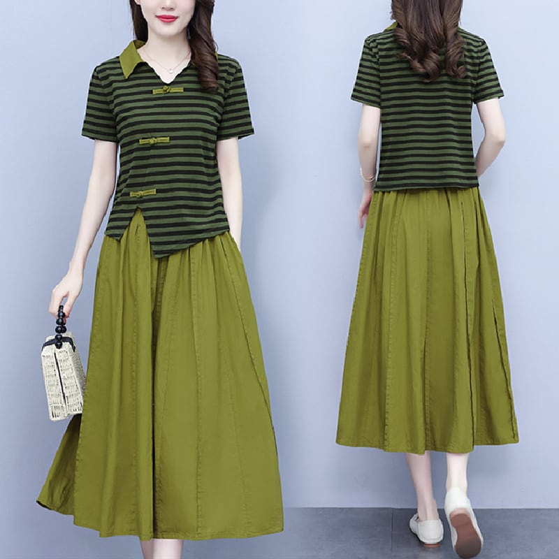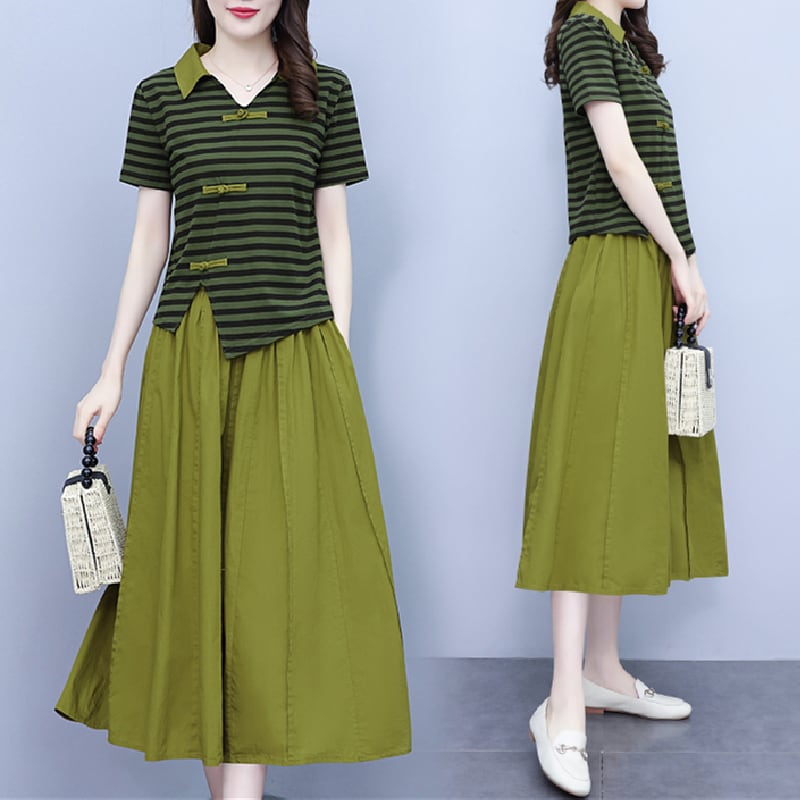 スタンダードドレス サマーストライプスカート コットン レトロ 大きめサイズ 夏物 muto40540419287