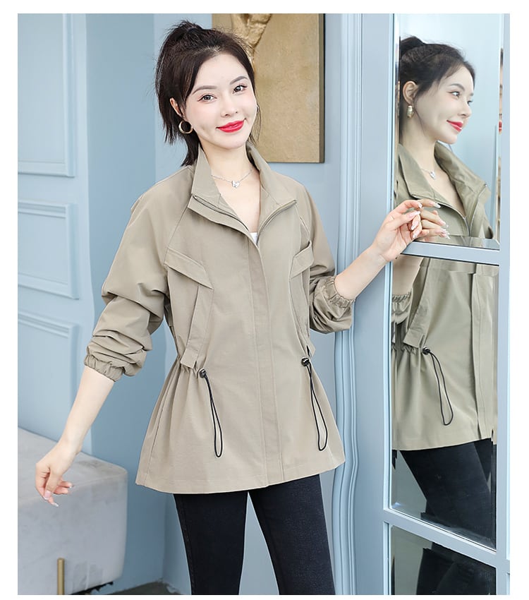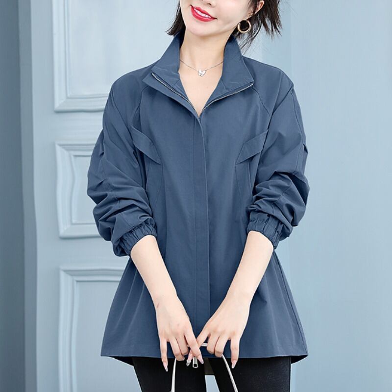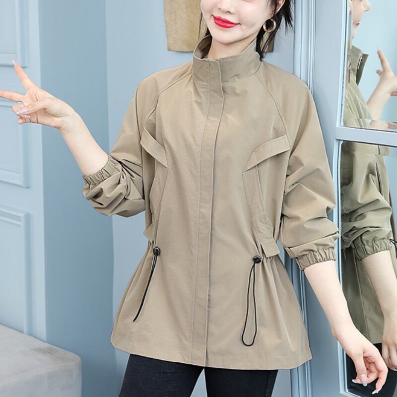 ジャケット スプリングオータムルーズギャザーウェスト薄手ショート 大きめサイズ 春物 秋物 muto55798414266
